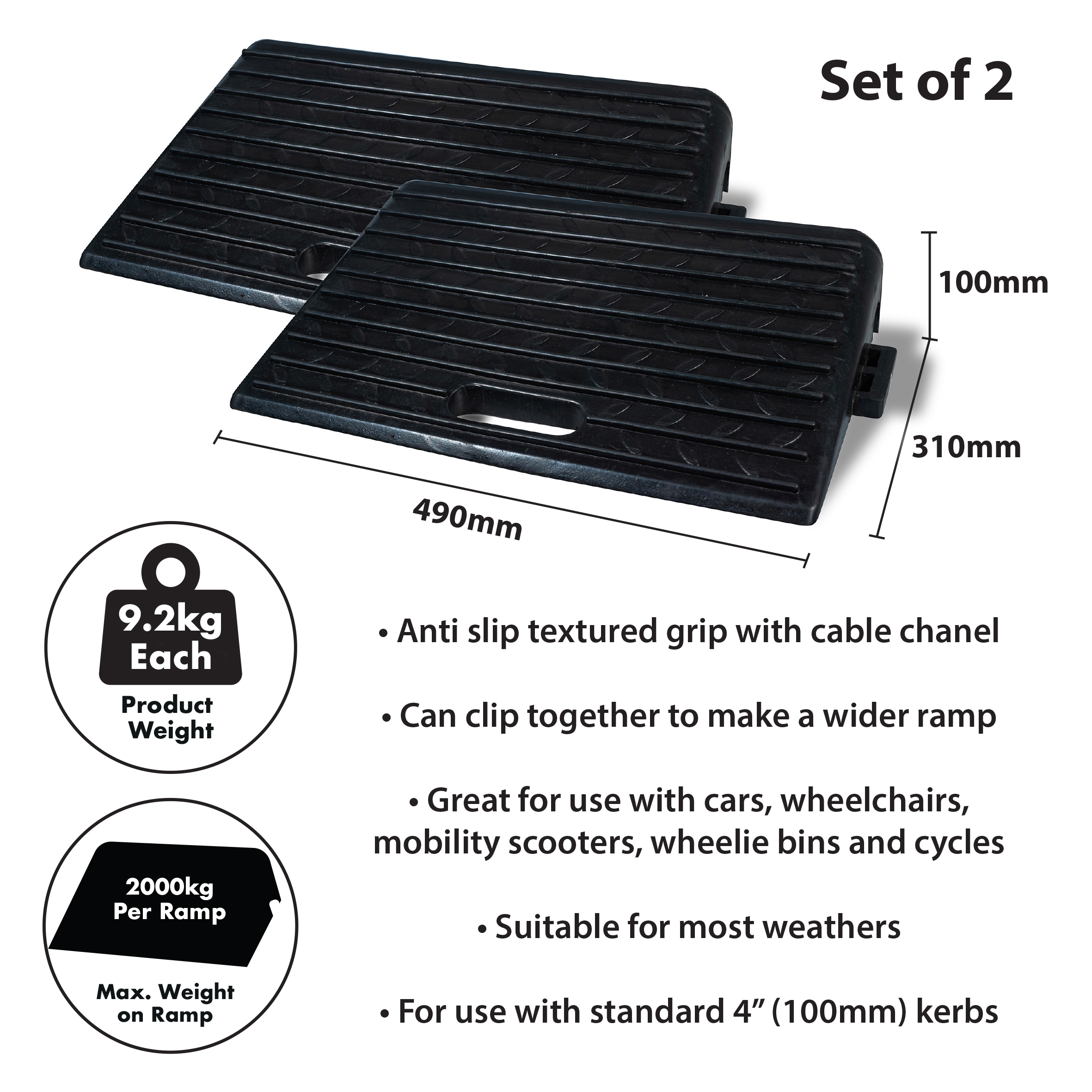Convenience:Â Portable ramp designed to easily navigate kerbs and thresholds up to 4″ (100mm) high. Multiple ramps can be interlocked for a secure and stable connection, allowing you to create a longer, more dependable incline.