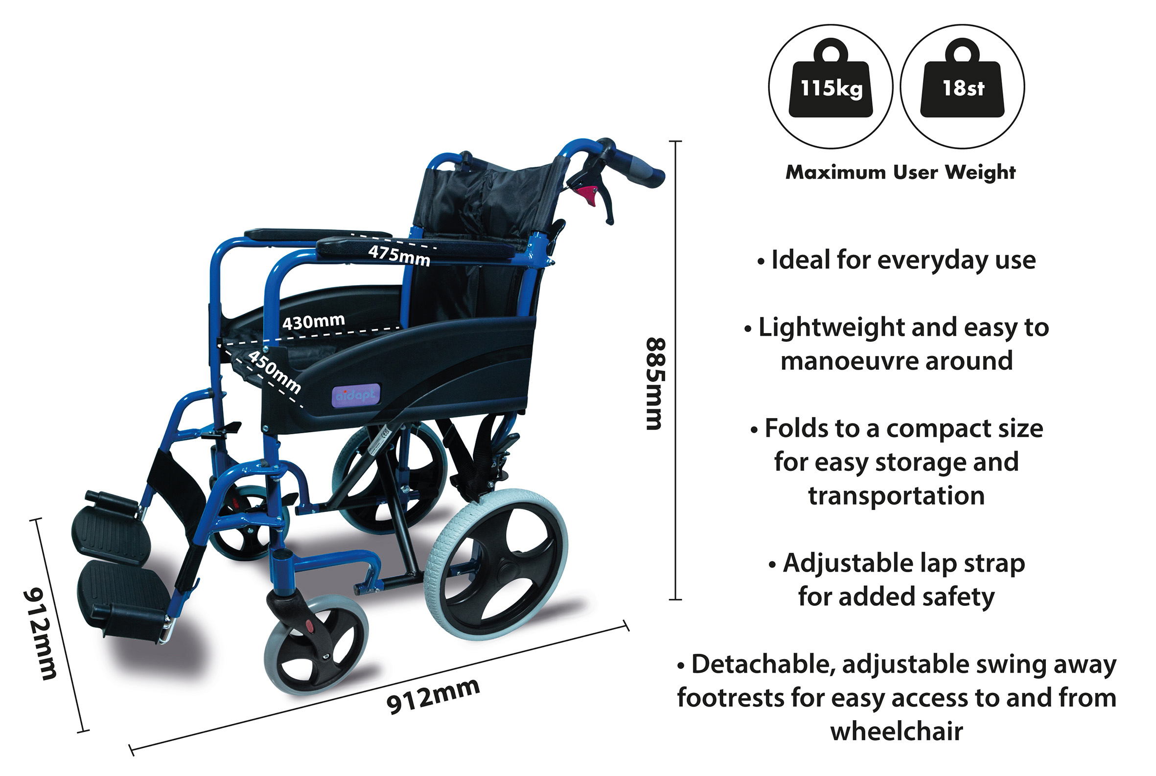 - Lightweight aluminium transit chair ideal for occasional use