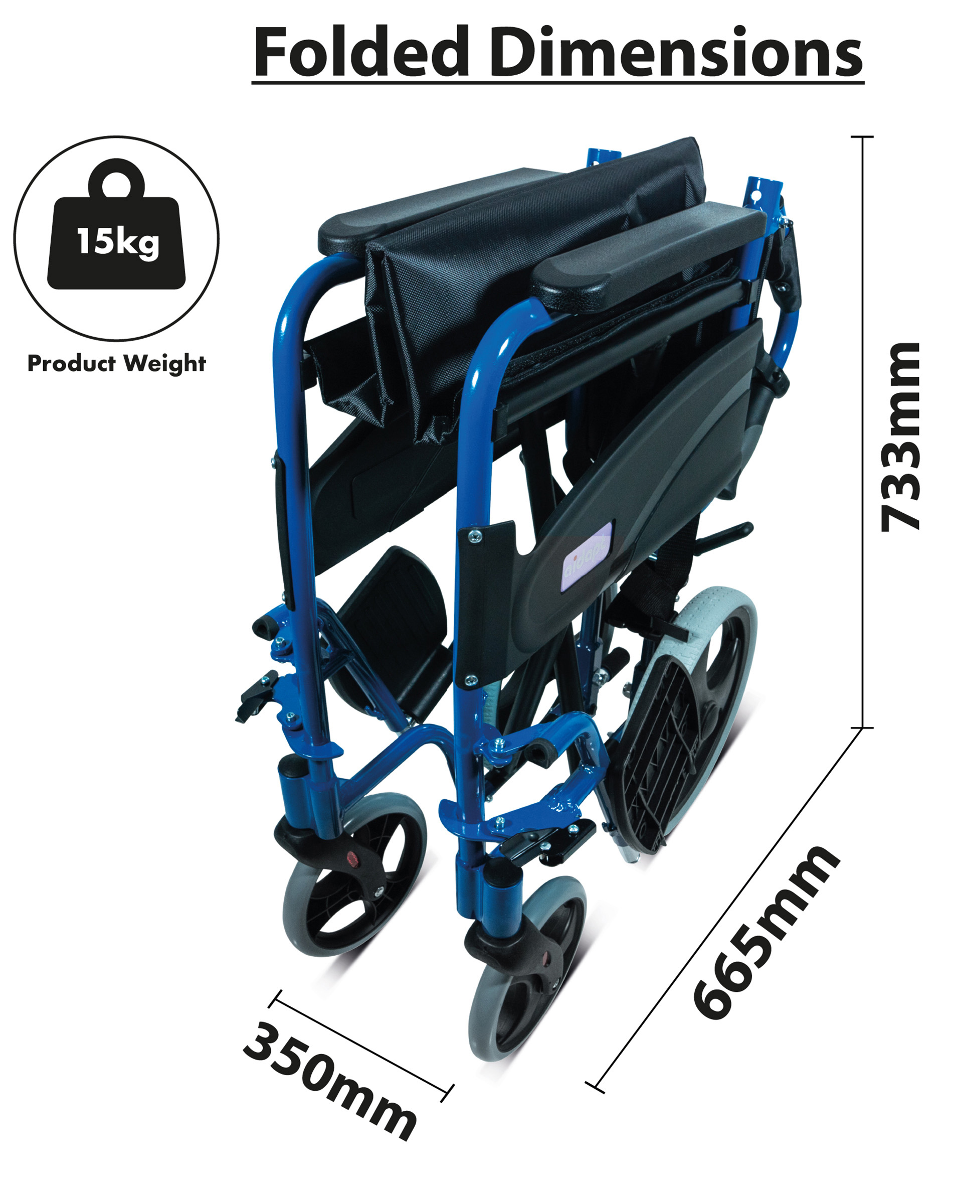 The Aidapt Compact Transport Aluminium Wheelchair features a lightweight, highly compact aluminium frame. Perfect for occasional or first-time users, this wheelchair offers durability, ease of use, and reliability. It folds in seconds, making it simple to store in your car trunk, coach, or airplane—so you can take it anywhere effortlessly.