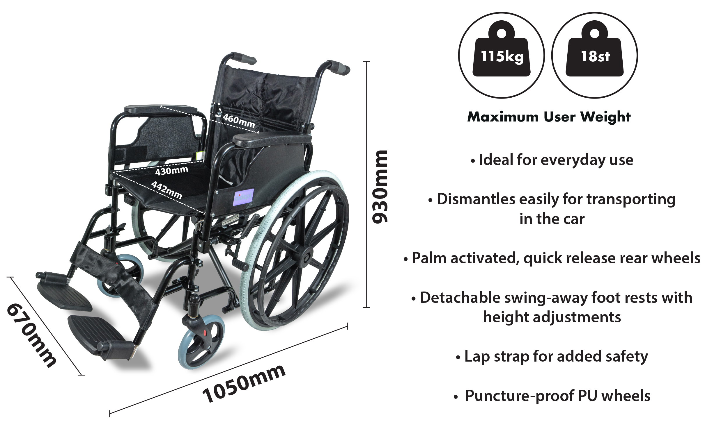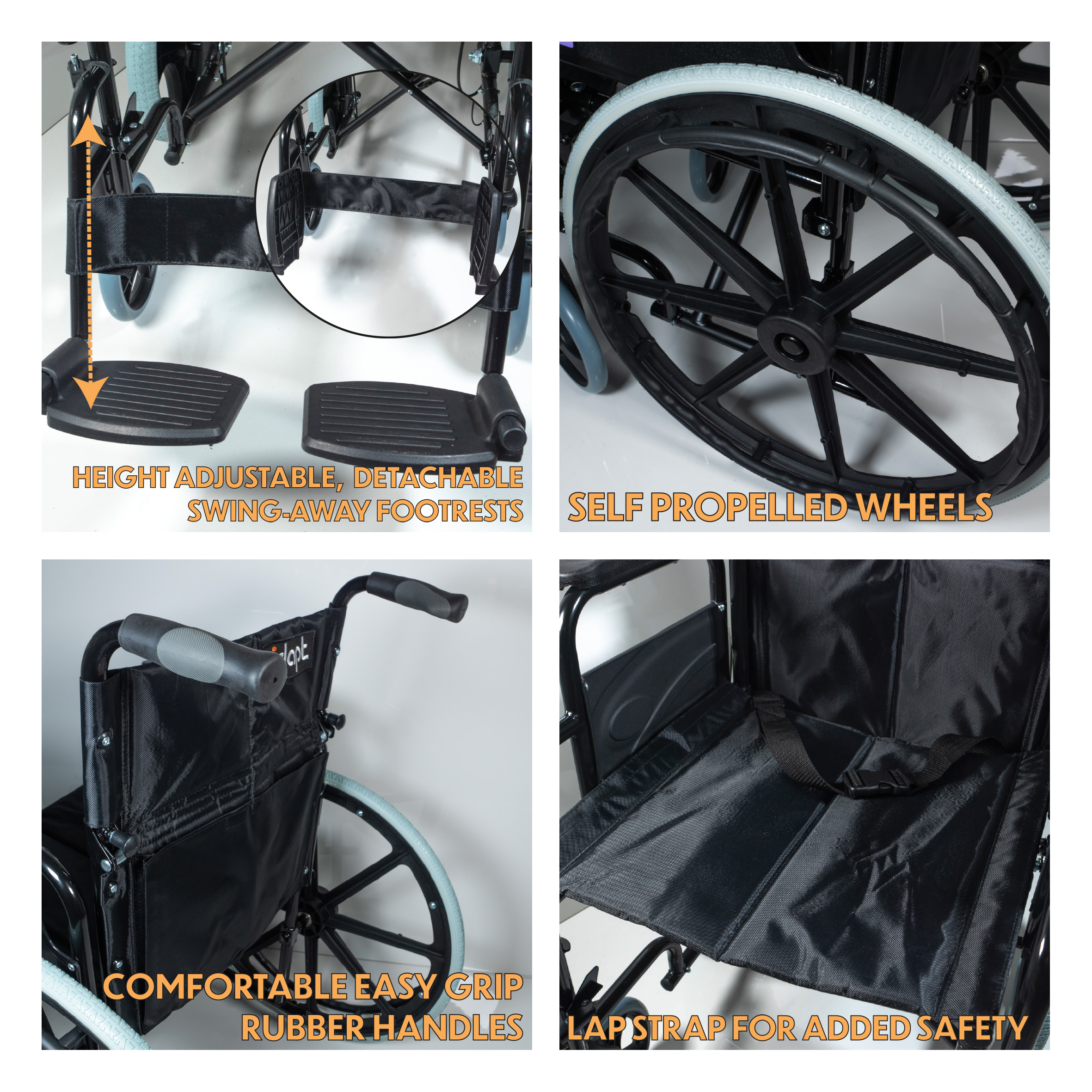 AIDAPT Deluxe Self Propelled Steel Wheel Chair – BLACK