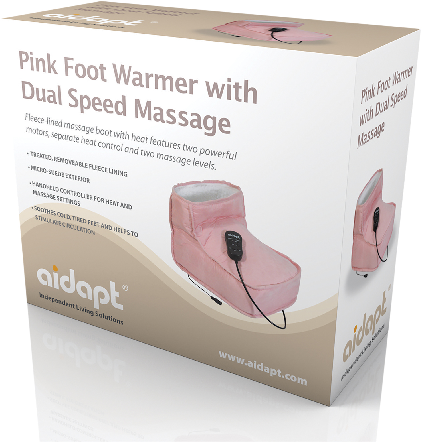 The fleece-lined massage boot with heat features two powerful motors, separate heat control and two massage levels. The Massage Foot Warmer has a soft, removable fleece lining that is machine washable and is treated to prevent lingering foot odour. The exterior material is a soft-touch micro-suede and the boot will fit up to a man s size 15 foot. The handheld controller adjusts both heat and massage; soothing cold, tired or aching feet.