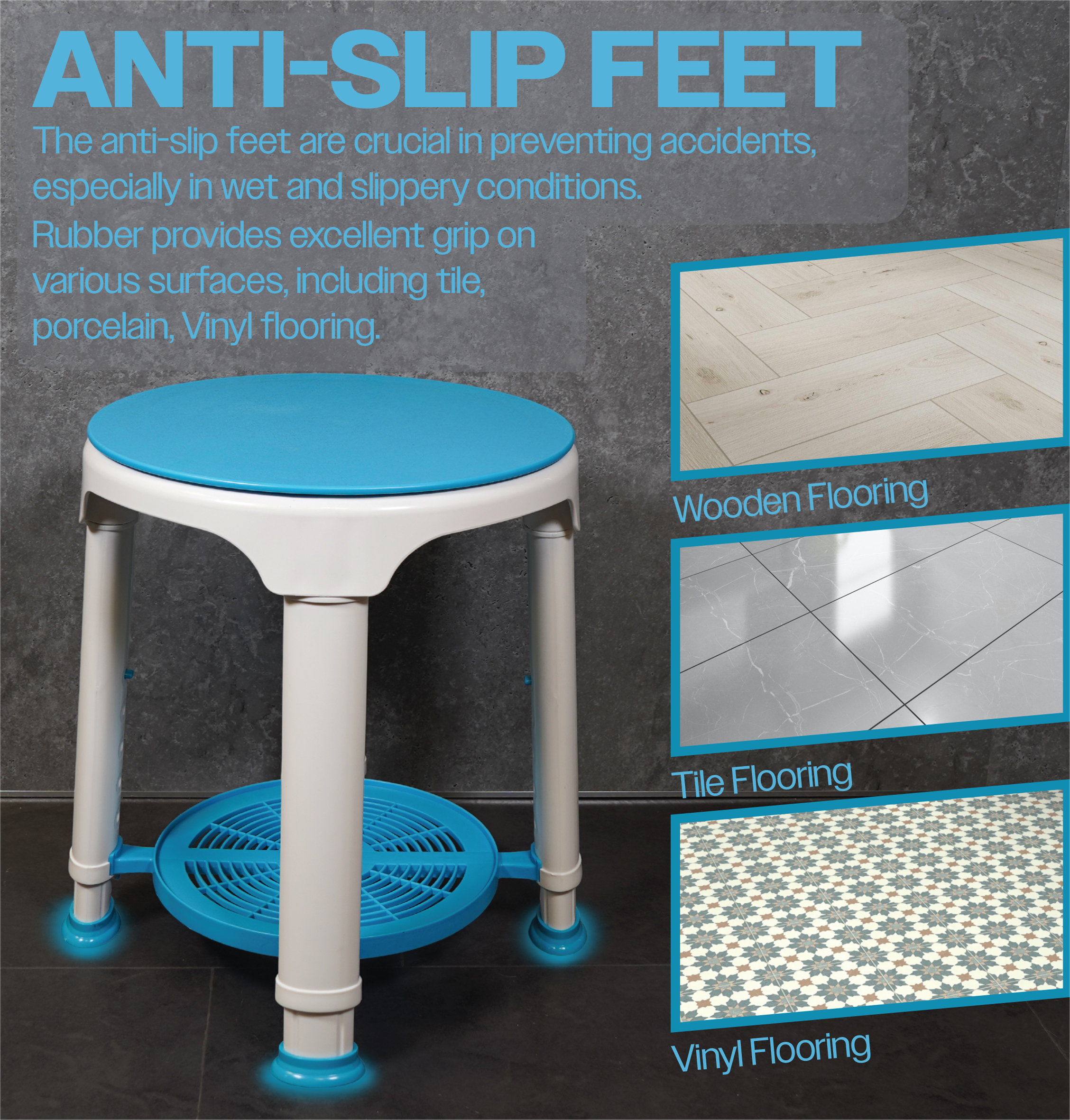- PROMOTES INDEPENDENT BATHING; Rotating swivel seat facilitates effortless movement for users, easing getting on and off the stool during shower time