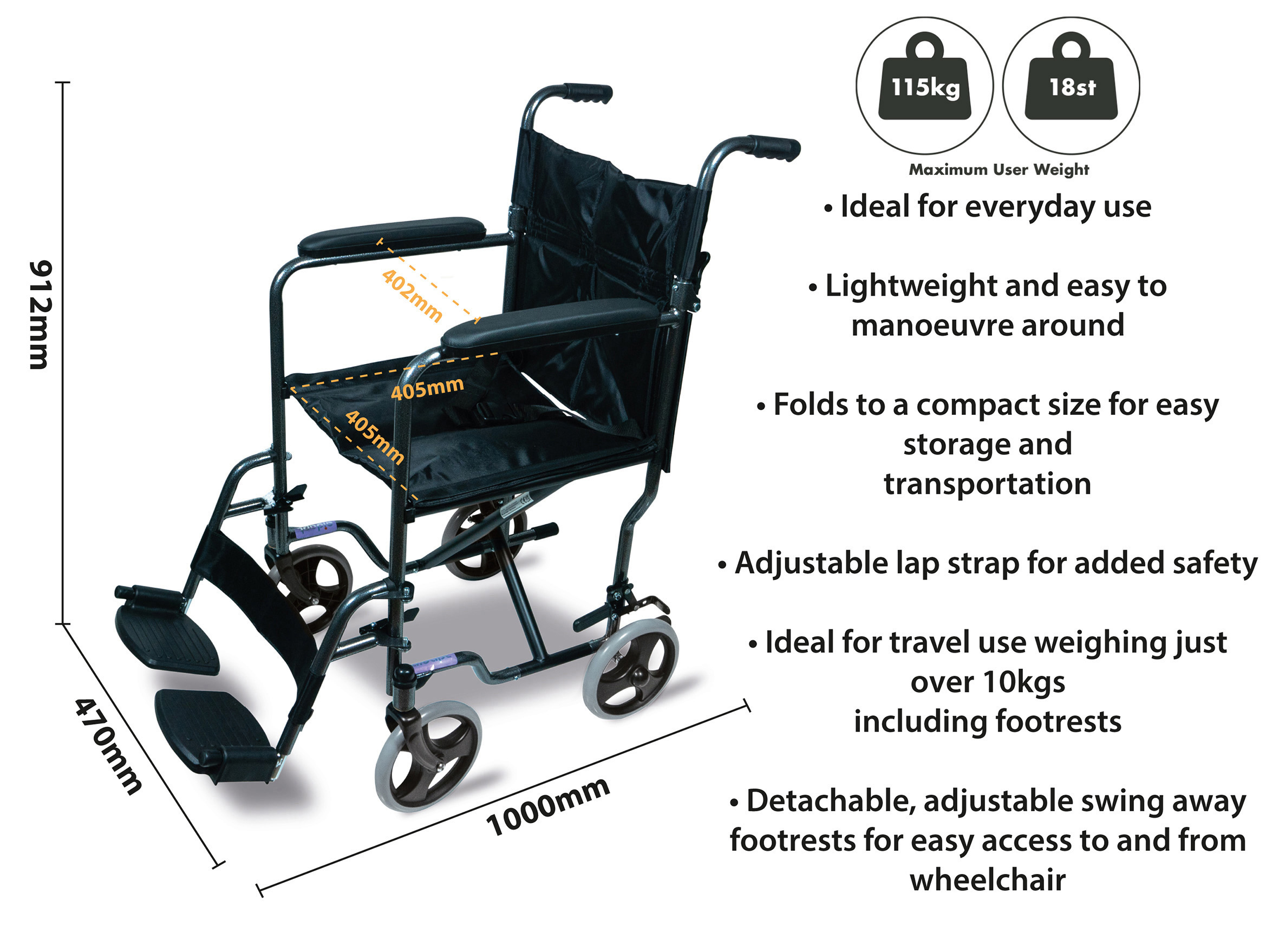 - Ideal for travel weighing just over 12kg including footrests