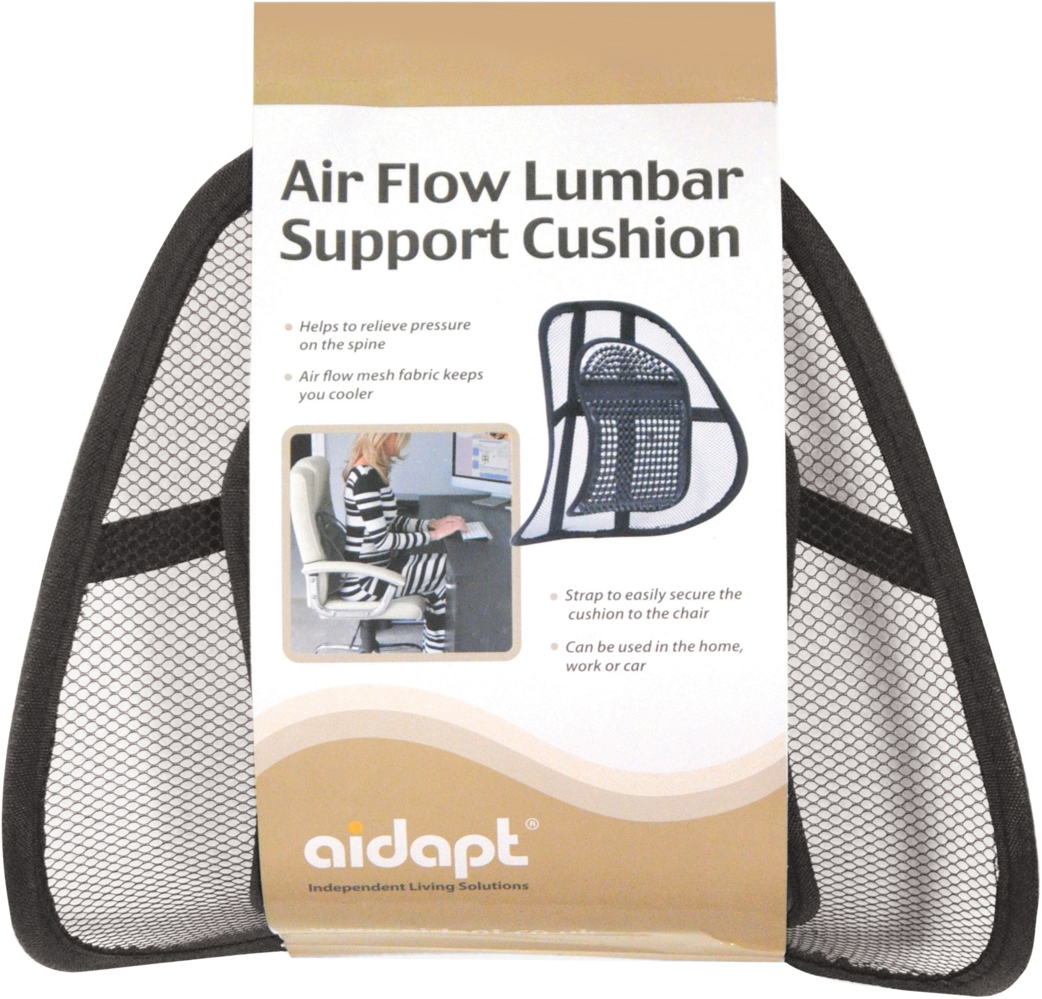 Made with a lightweight, flexible frame covered in a supportive fabric mesh, it features an adjustable strap to securely attach the cushion to your seat. This helps maintain the correct position for optimal comfort and improved spinal alignment.