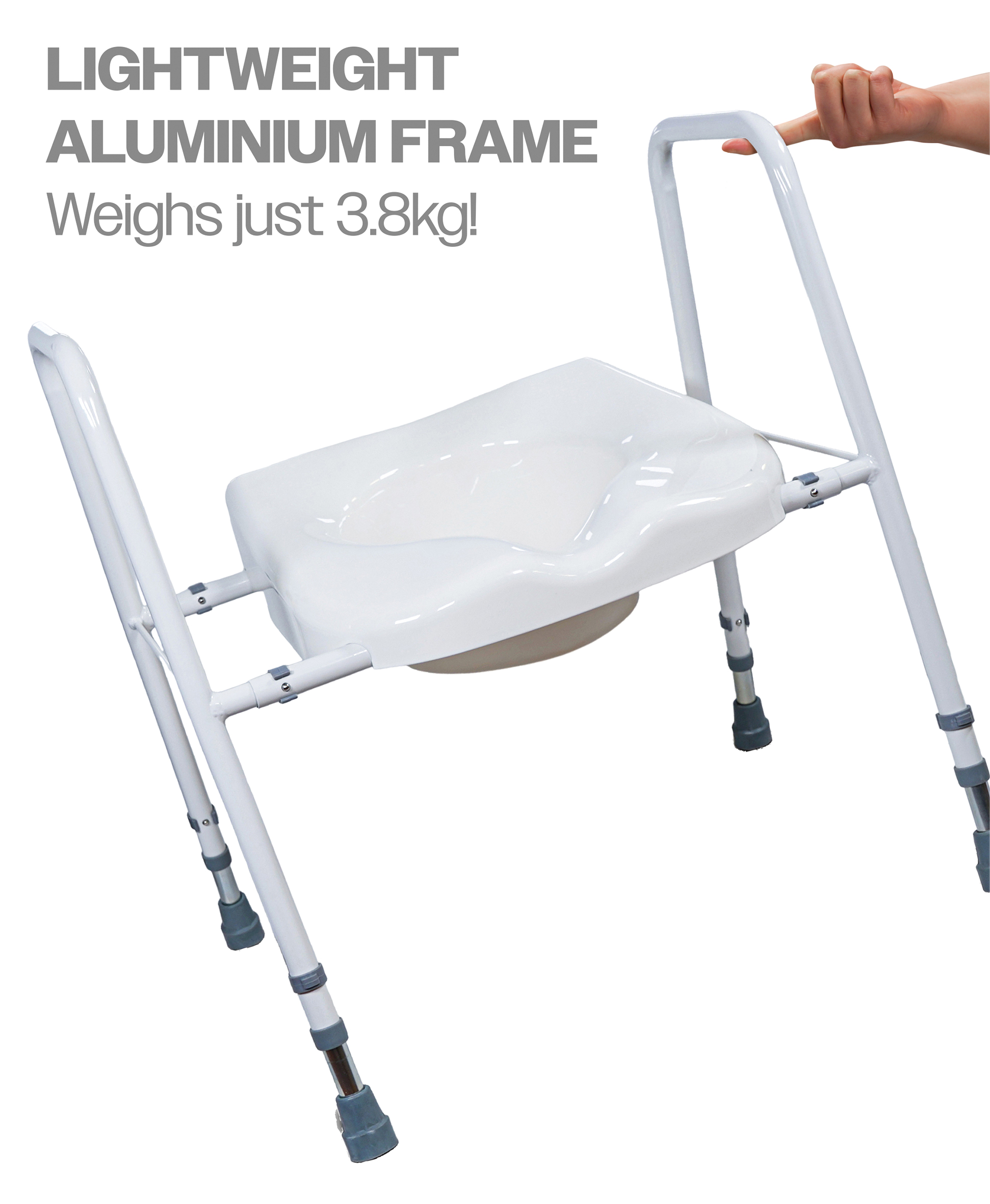 - FUNCTIONAL; Raised toilet seat with rust-free Aluminium frame for easy fitting around standard WC’s, helps and supports sitting and rising on to the toilet