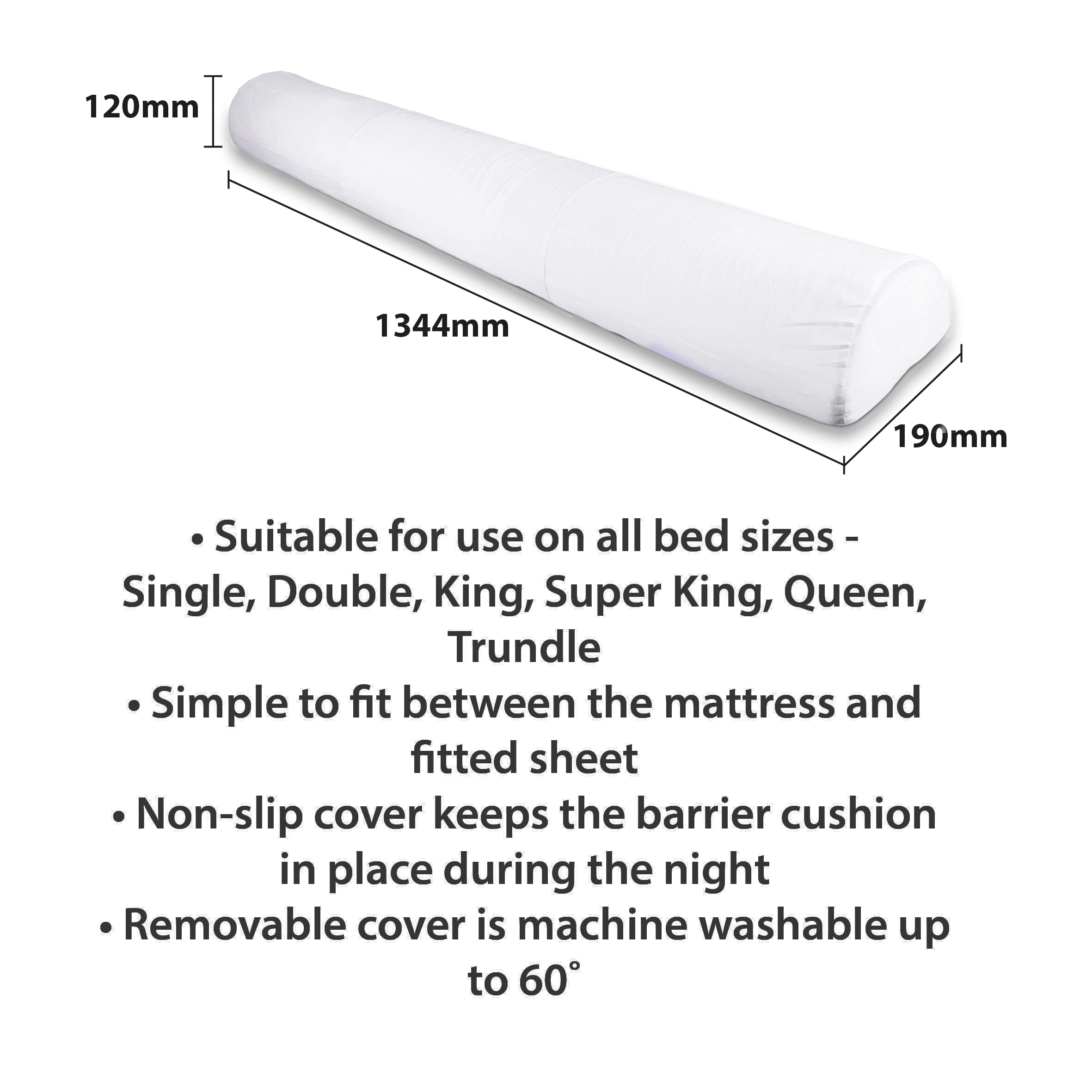 - Non-slip cover keeps the barrier cushion in place during the night