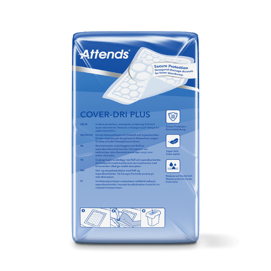 Enjoy the added benefit of odour control with Attends incontinence products. Specially engineered to minimise unpleasant smells, the superabsorbent polymer (SAP) in the core draws urine away from the surface and skin. This not only helps reduce odours but also lowers the risk of leaks.