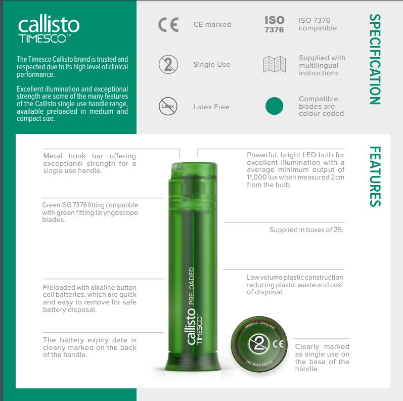 So, step into the future of airway management with the Callisto Adult Preloaded Single Use Laryngoscope Handle – it’s out of this world!