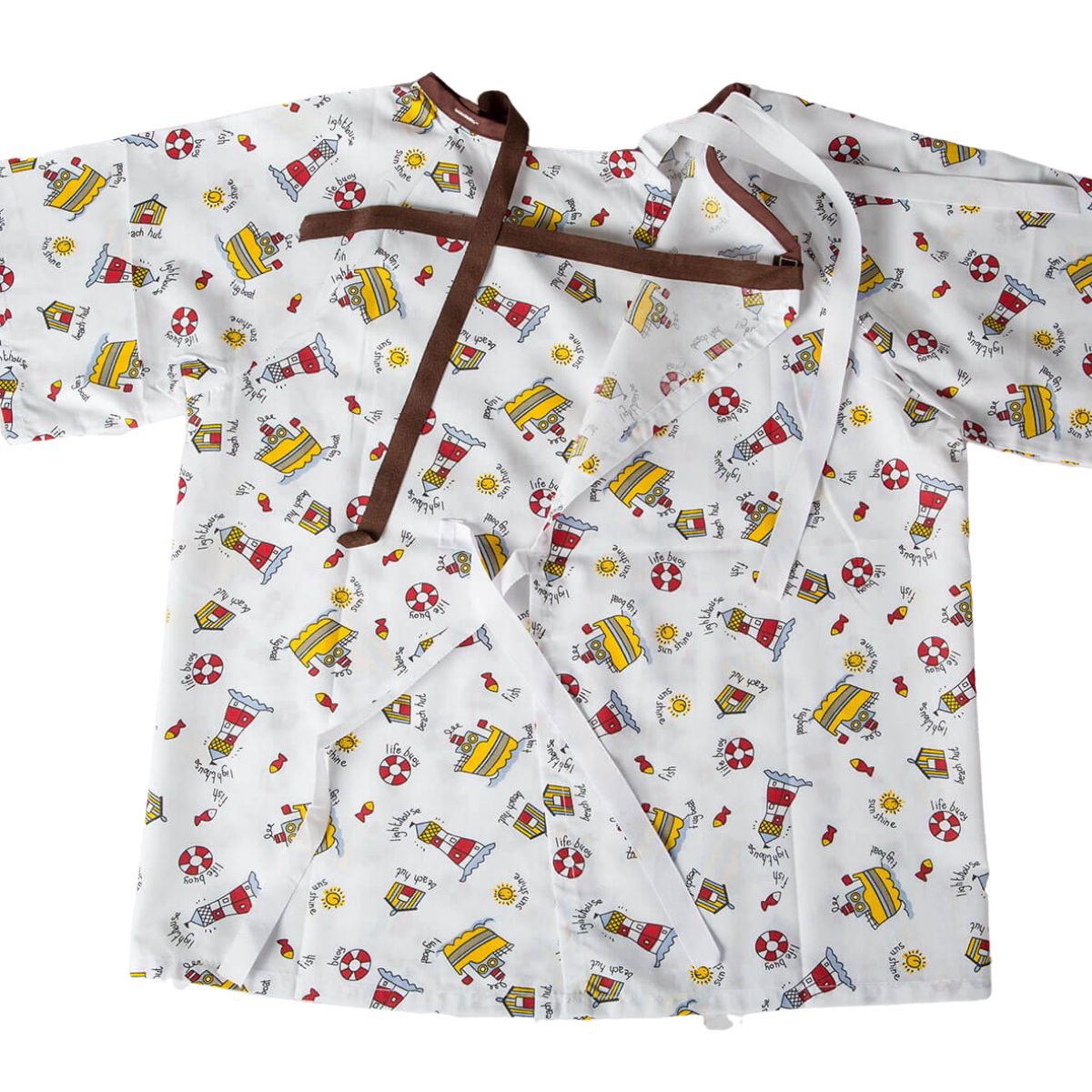 Our children’s hospital gowns are thoughtfully designed to be bright, cheerful, and comforting for young patients. Crafted from durable polycotton, these gowns can withstand high-temperature thermal disinfection for reliable hygiene. The secure tie closures at the back provide a comfortable fit and maintain privacy, while the fun seaside prints help create a soothing, stress-reducing environment during hospital stays.