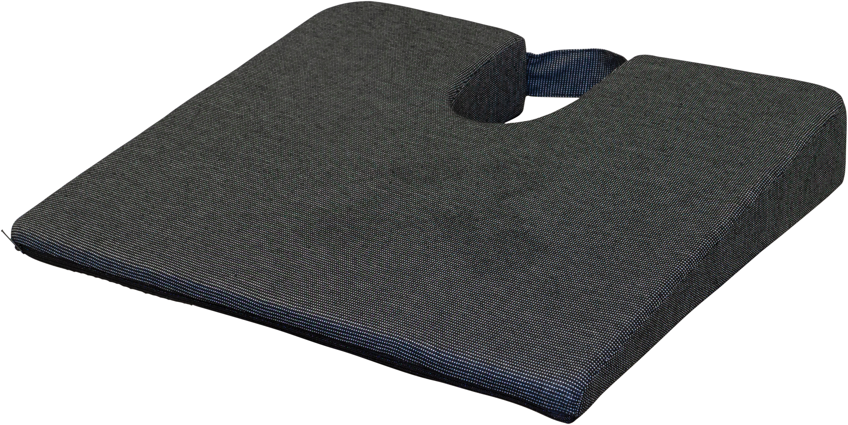 The black charcoalcotton twill covered Coccyx Wedge Cushion has been designed to improve your posture and to offer relief to those who suffer with a tender coccyx. The 11 deg. angle is accepted as producing the optimum sitting position and correct posture. The cut-out at the back of the cushion allows the coccyx to be suspended without pressure. The construction of the cushion includes both standard foam and a generous 2 cm layer of high density memory foam for improved comfort. The Coccyx Wedge Cushion can also be used in a car seat as an infill.