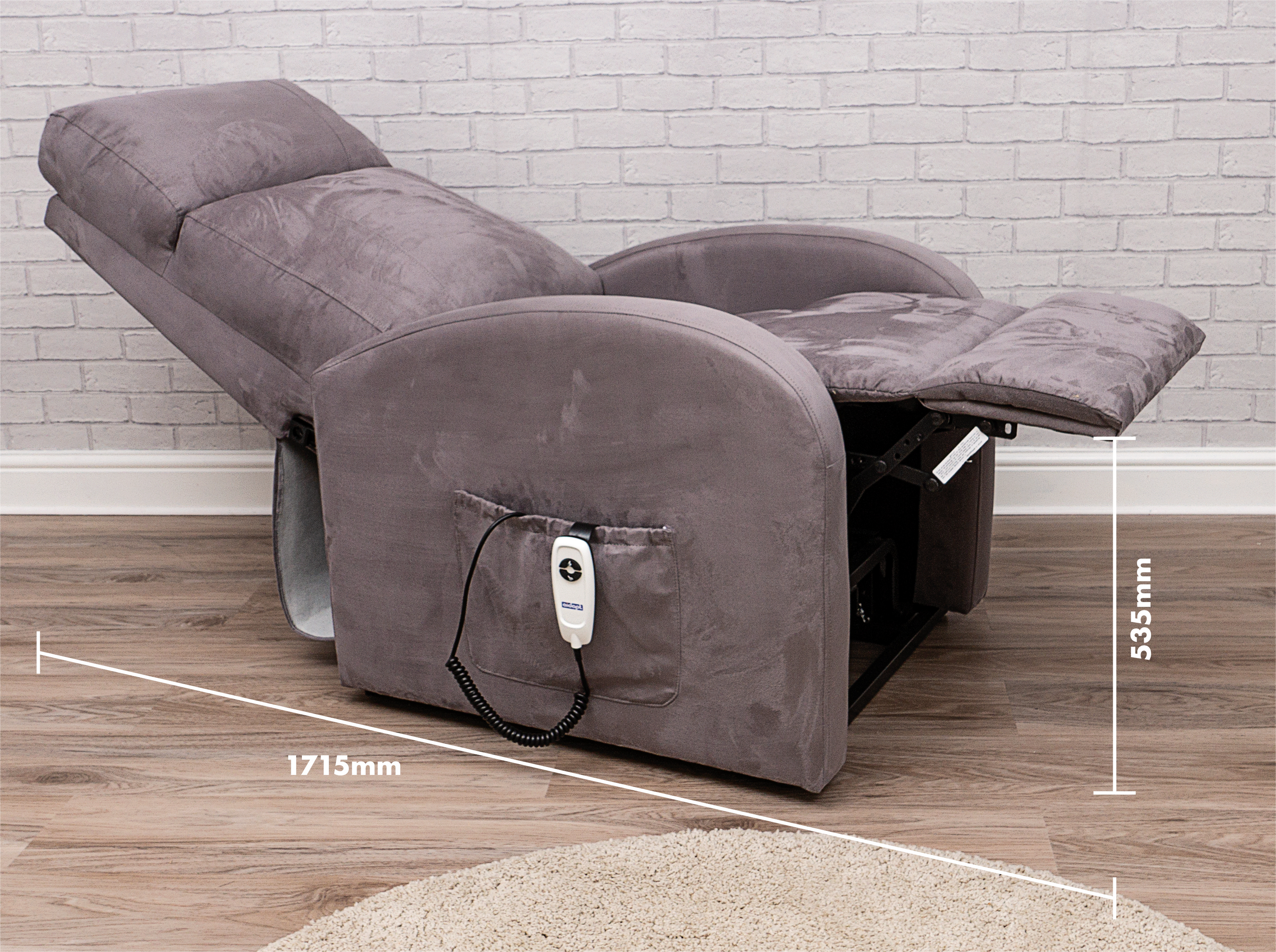 The Daresbury Rise and Recliner Chair adds a touch of style to any living room while providing exceptional comfort. Available in a range of colours and fabrics, it features both lift and recline functions for tailored support. The user-friendly 2-button control handset makes adjustments simple and convenient. Equipped with a high-quality OKIN single motor drive system, the Daresbury Chair is fully certified to British Standards. To ensure optimal operation, it should be placed at least 26 inches away from the wall. The chair supports a maximum user weight of 160kg, combining durability with comfort and style.