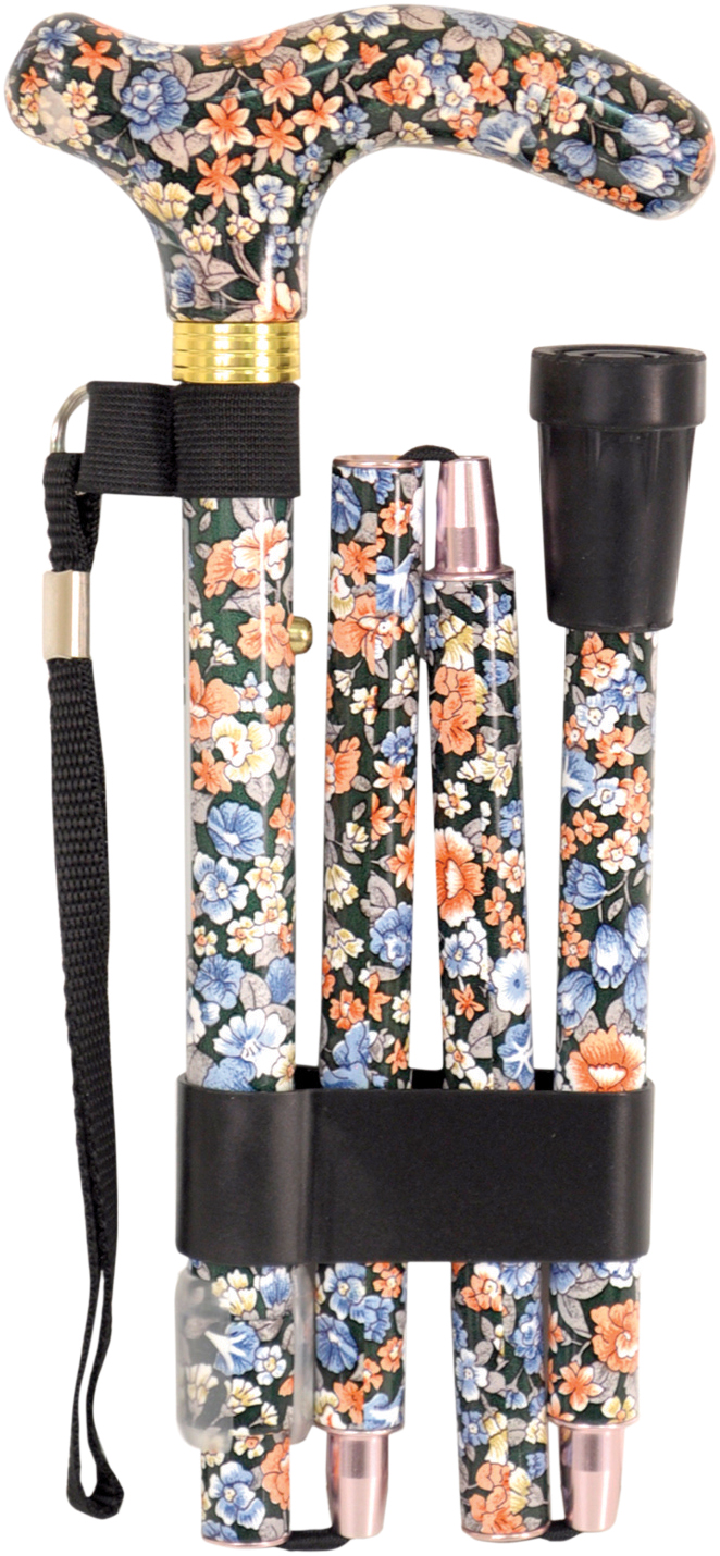These luxurious folding walking canes are extendable with 5 height adjustment settings. Ideal for use with either hand, these deluxe canes are supplied with a wrist strap and a non slip rubber ferrule for extra security. These canes fold into sections and can be conveniently stored away in a bag, pocket or drawer.