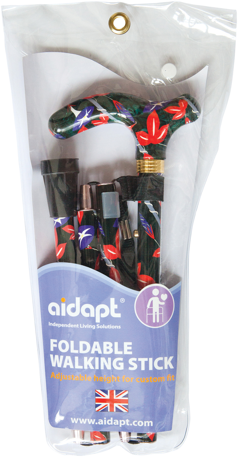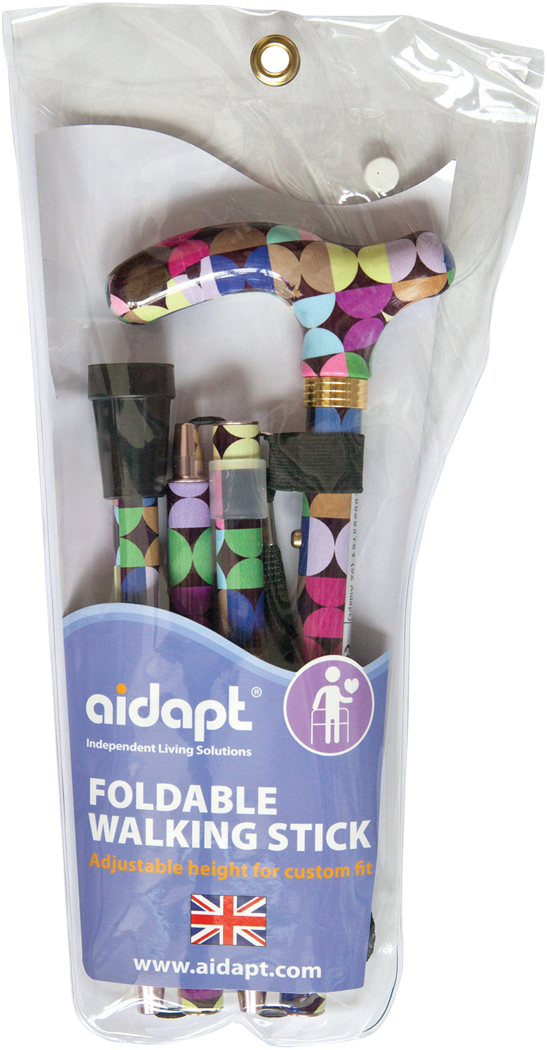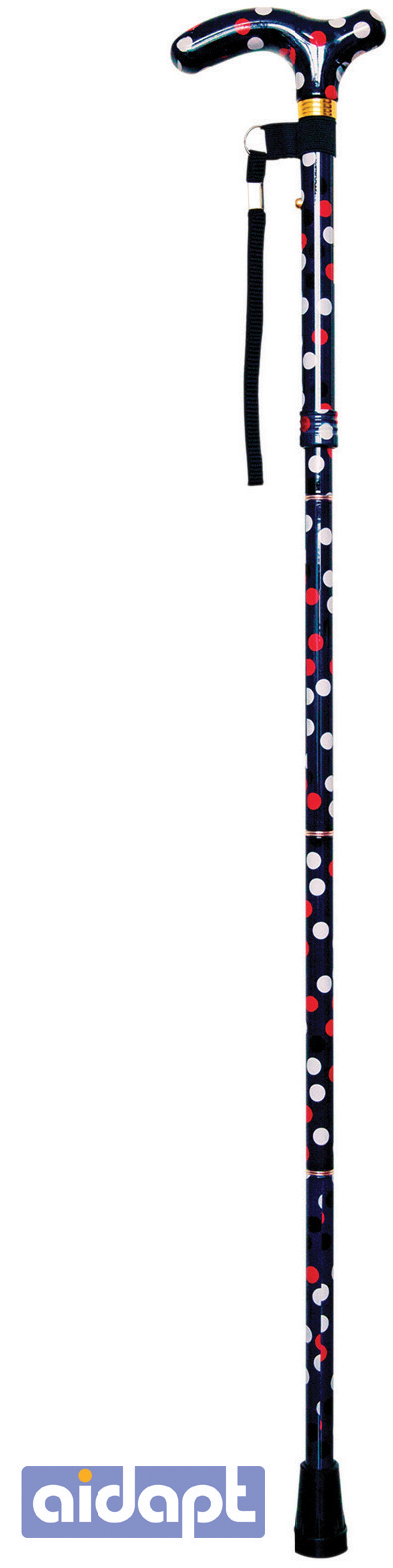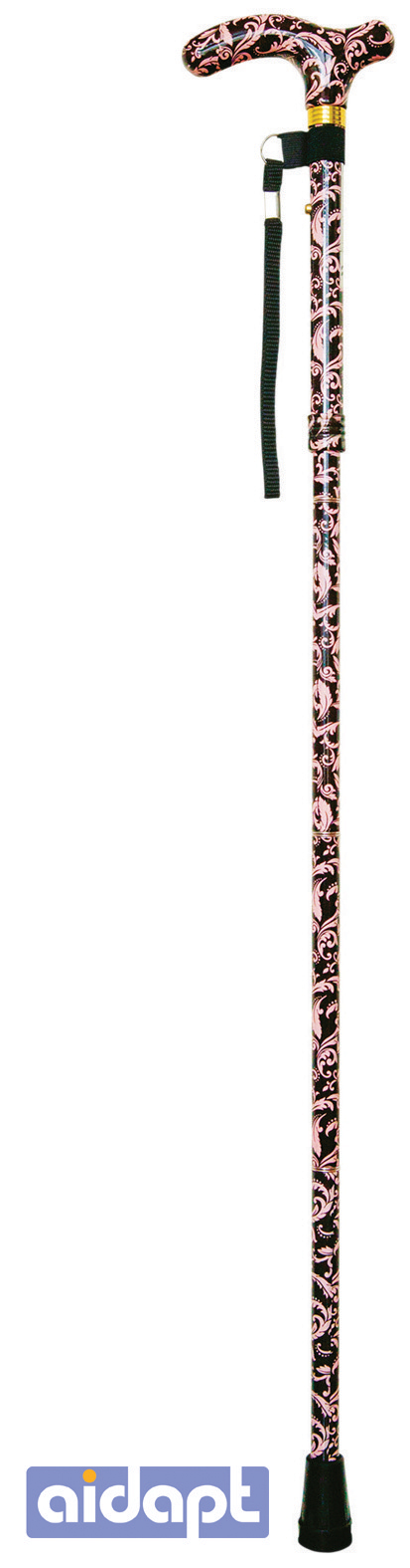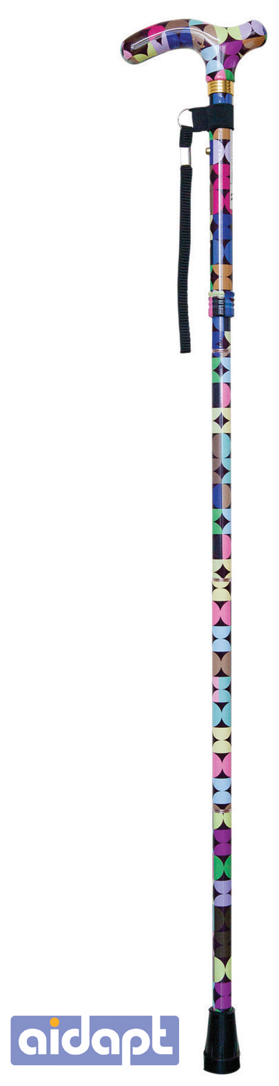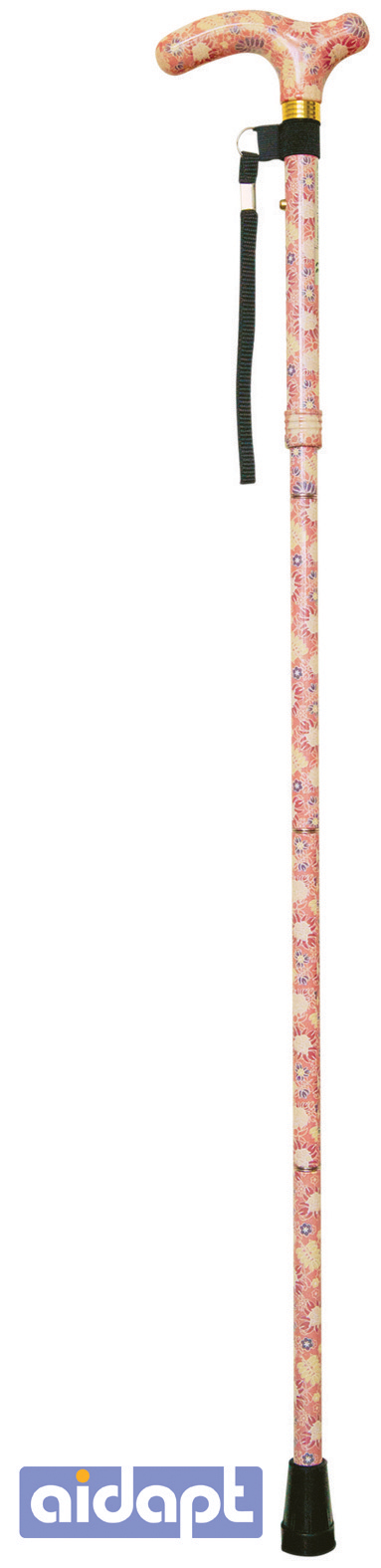 These luxurious folding walking canes are extendable with 5 height adjustment settings. Suitable for use with either hand, these deluxe canes are supplied with a wrist strap and a non slip rubber ferrule for extra security. These canes fold into sections and can be conveniently stored away in a bag, pocket or drawer.