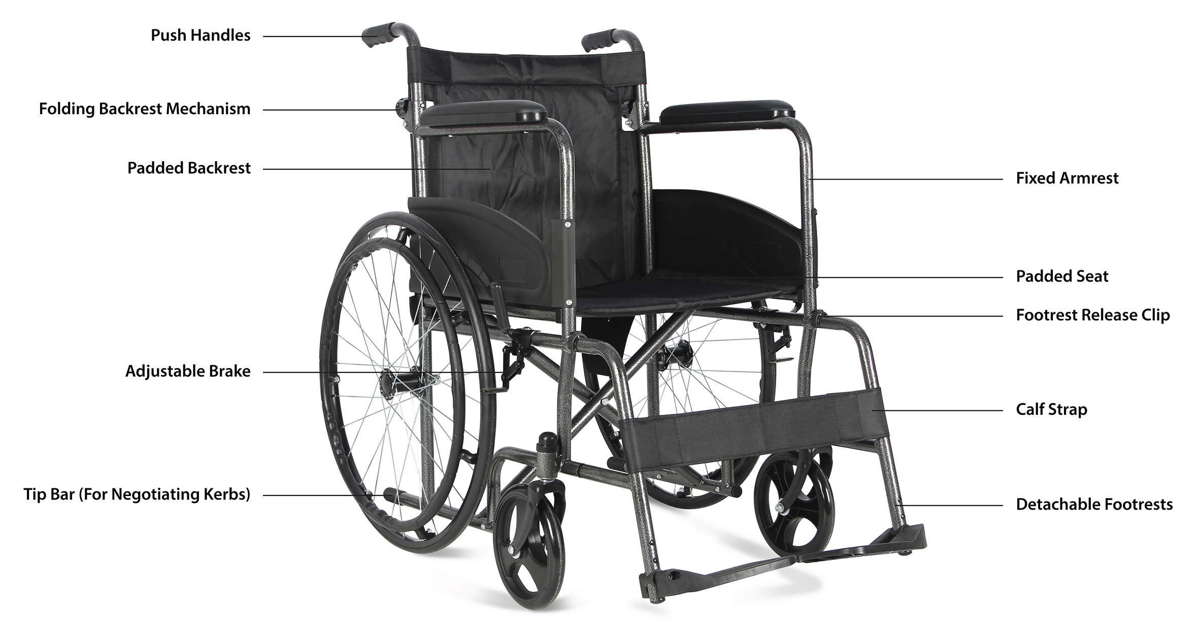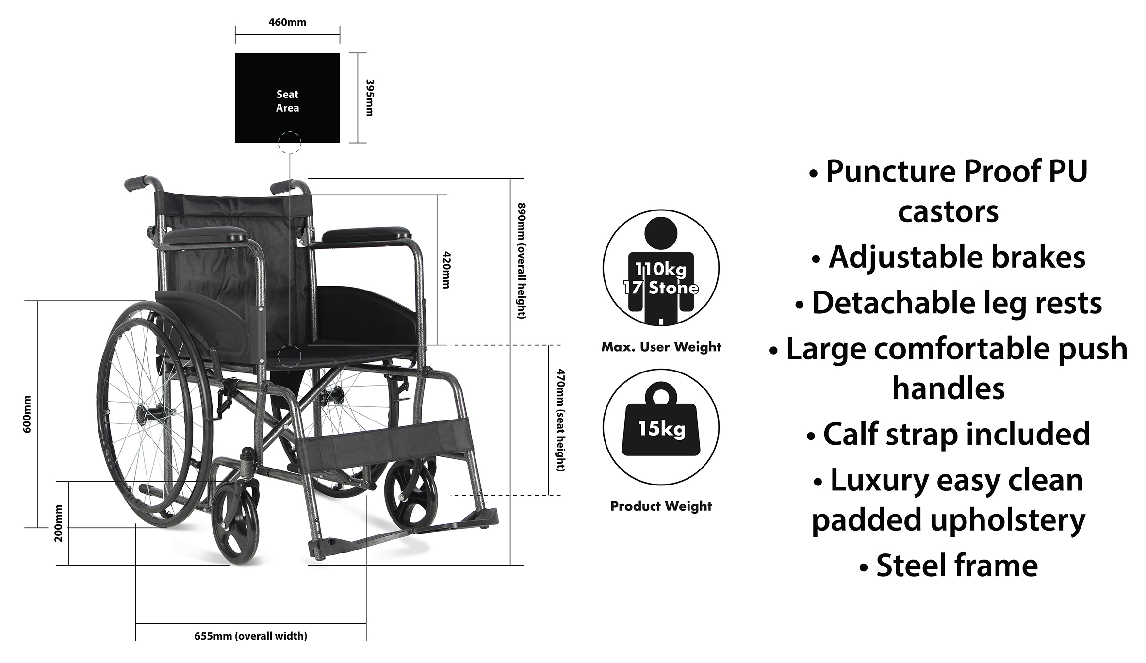 The Deluxe Self-Propelled Steel Transit Chair by Aidapt is expertly designed for maximum comfort, ease of use, and lasting durability.