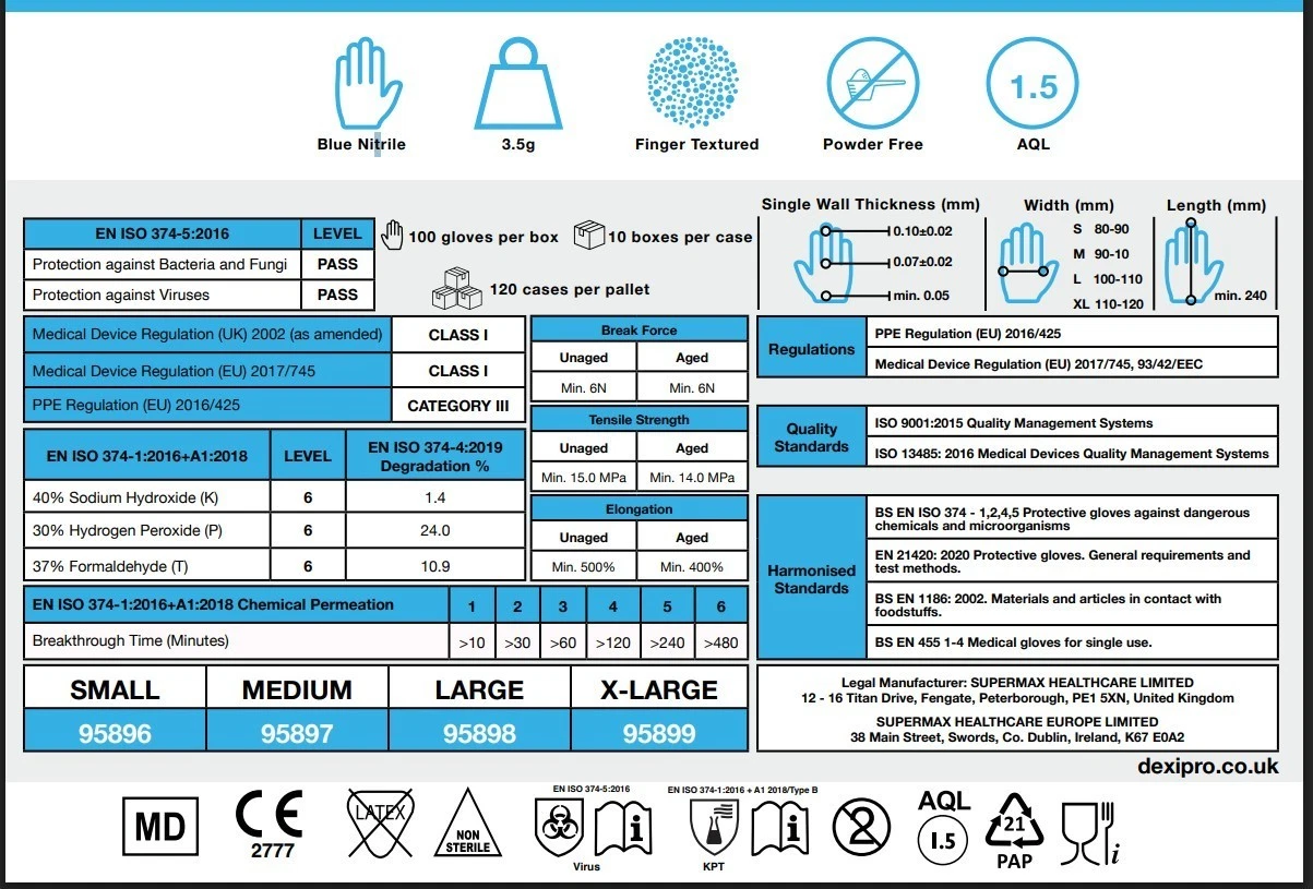 Sizing of the Medical Grade Nitrile Gloves