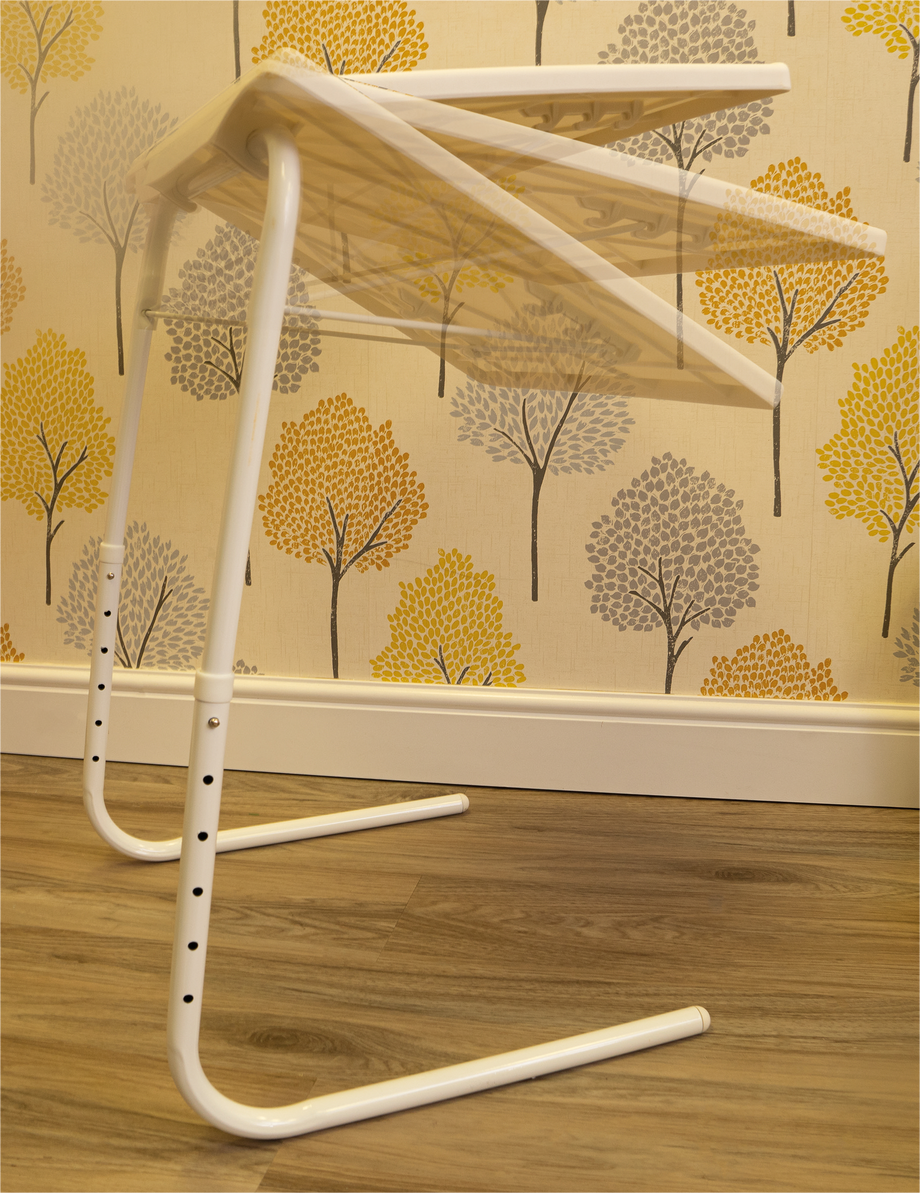 A folding Multi-Function Table that is ideal for general use around the home (such as jigsaws, playing board games, drawing, etc.). This lightweight multi-function table has 6 height settings, plus 3 levels of angle adjustment for the table top. DO NOT EXCEED MAX WEIGHT LOAD OF 10kg.