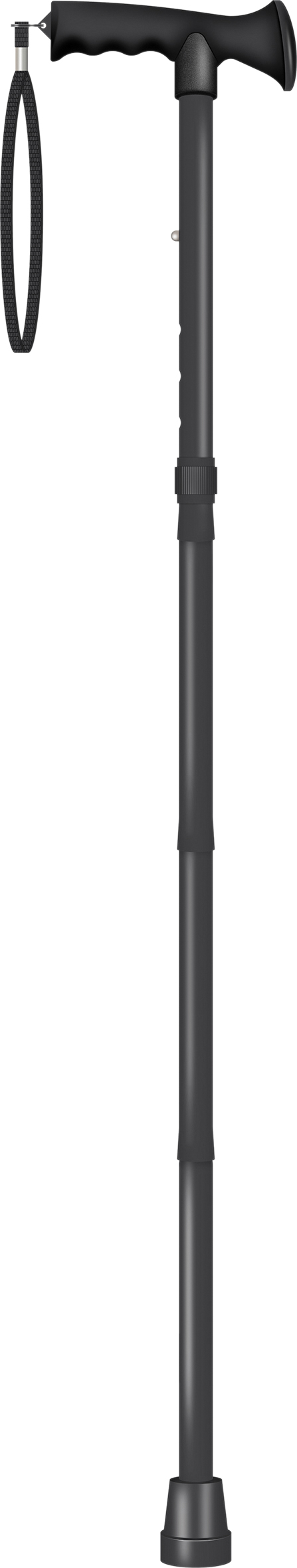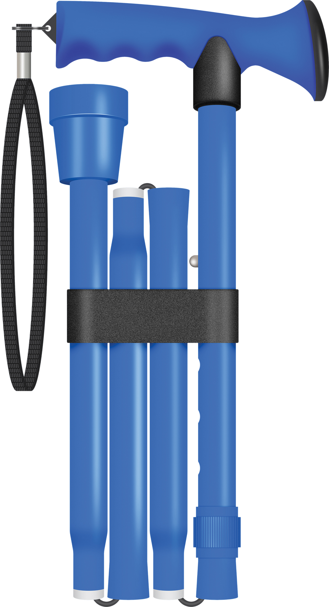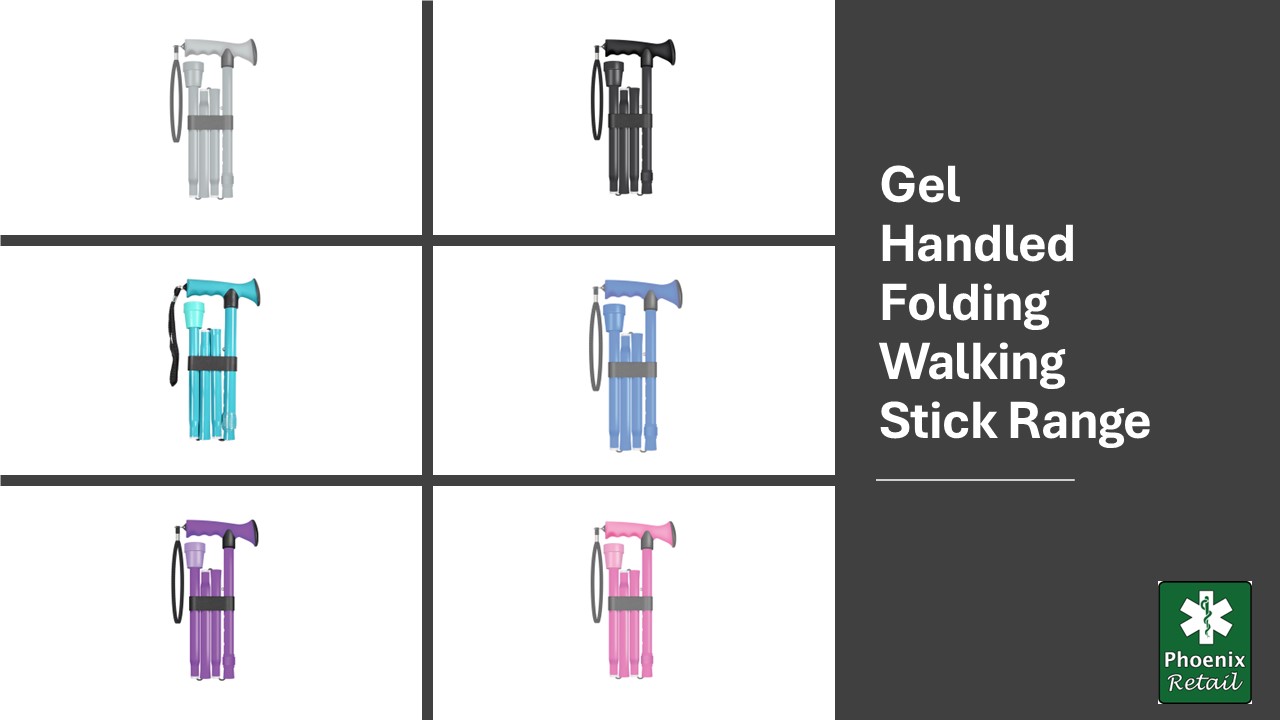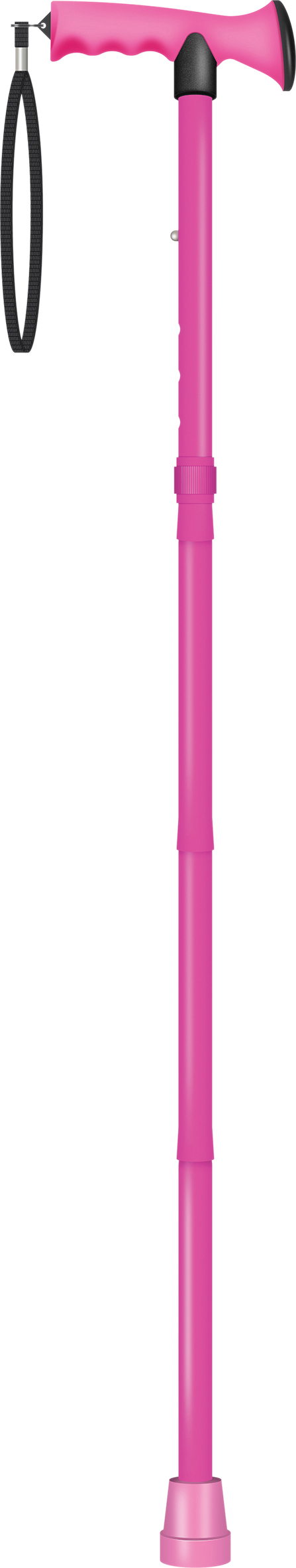 An adjustable rubber-handled walking stick featuring five height settings, suitable for use with either hand. The walking stick boasts a colorful design complemented by a black wrist strap, ensuring both style and security. Its foldable design allows for easy storage in a bag, pocket, or drawer, making it ideal for travel. Crafted from durable yet lightweight aluminium, it offers an ergonomic rubber handle for comfort and a soft rubber tip for added safety. Available in a variety of vibrant colours to suit all preferences. Maximum user weight capacity: 100kg.