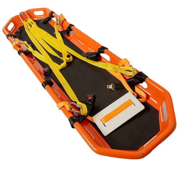basket stretcher, 2 piece basket stretcher, rescue stretcher, emergency stretcher, split rescue stretcher, compact rescue stretcher, lifting sling stretcher, winch-compatible stretcher, workplace first aid stretcher, industrial rescue equipment, HSE compliant stretcher, patient transport stretcher, casualty rescue stretcher