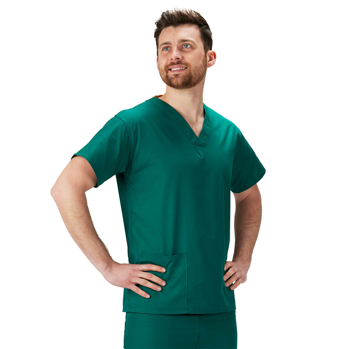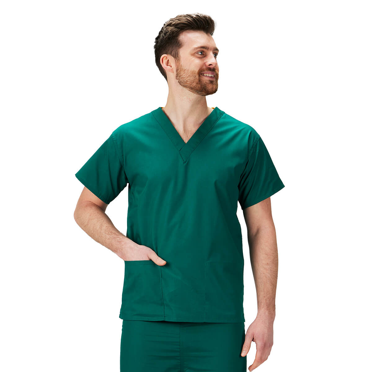 Our hunter green scrubs come in sizes XS through 4XL, each with a matching neckline colour code to speed up wardrobe choices. Wear with the matching Hunter Green scrub trousers.