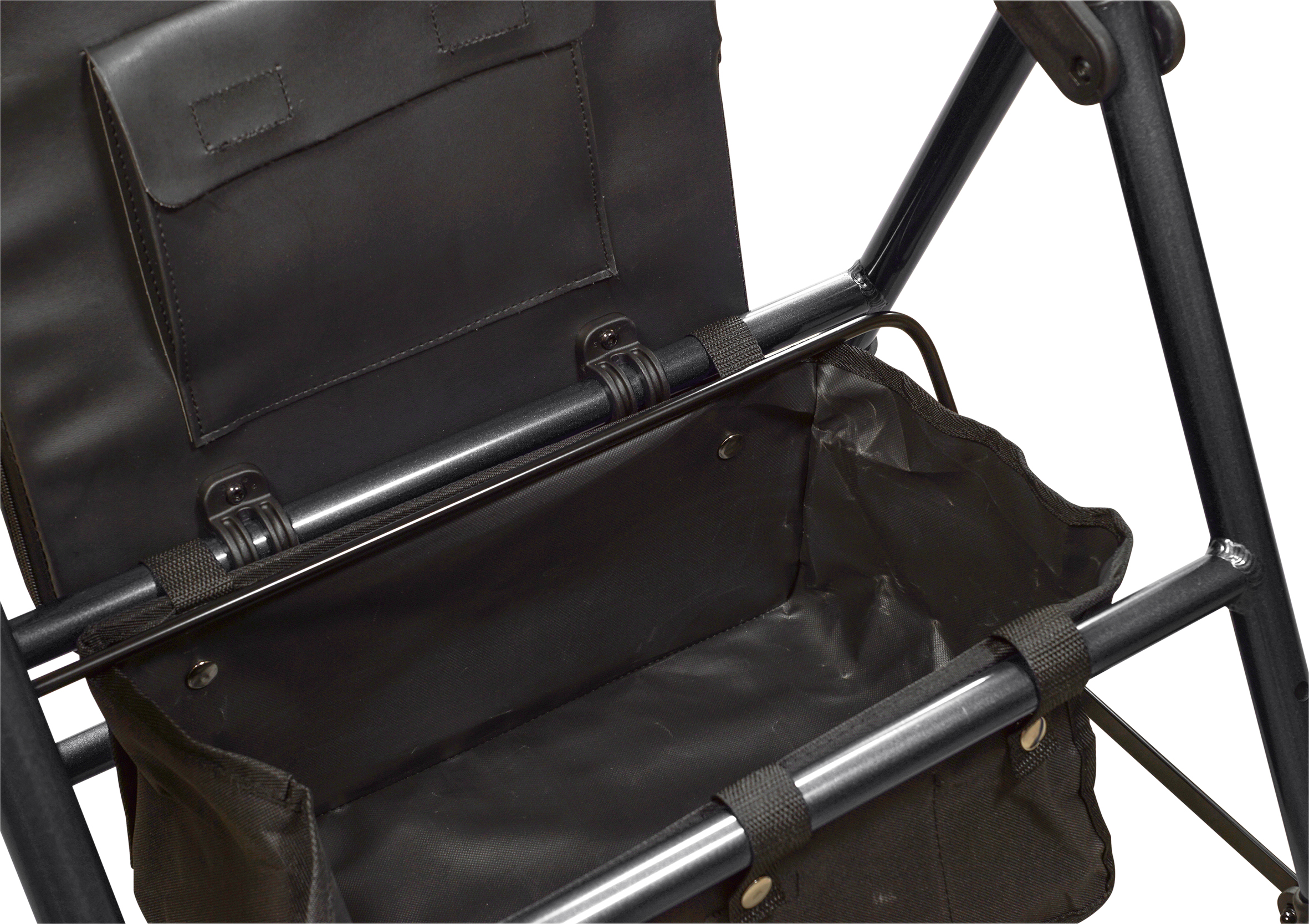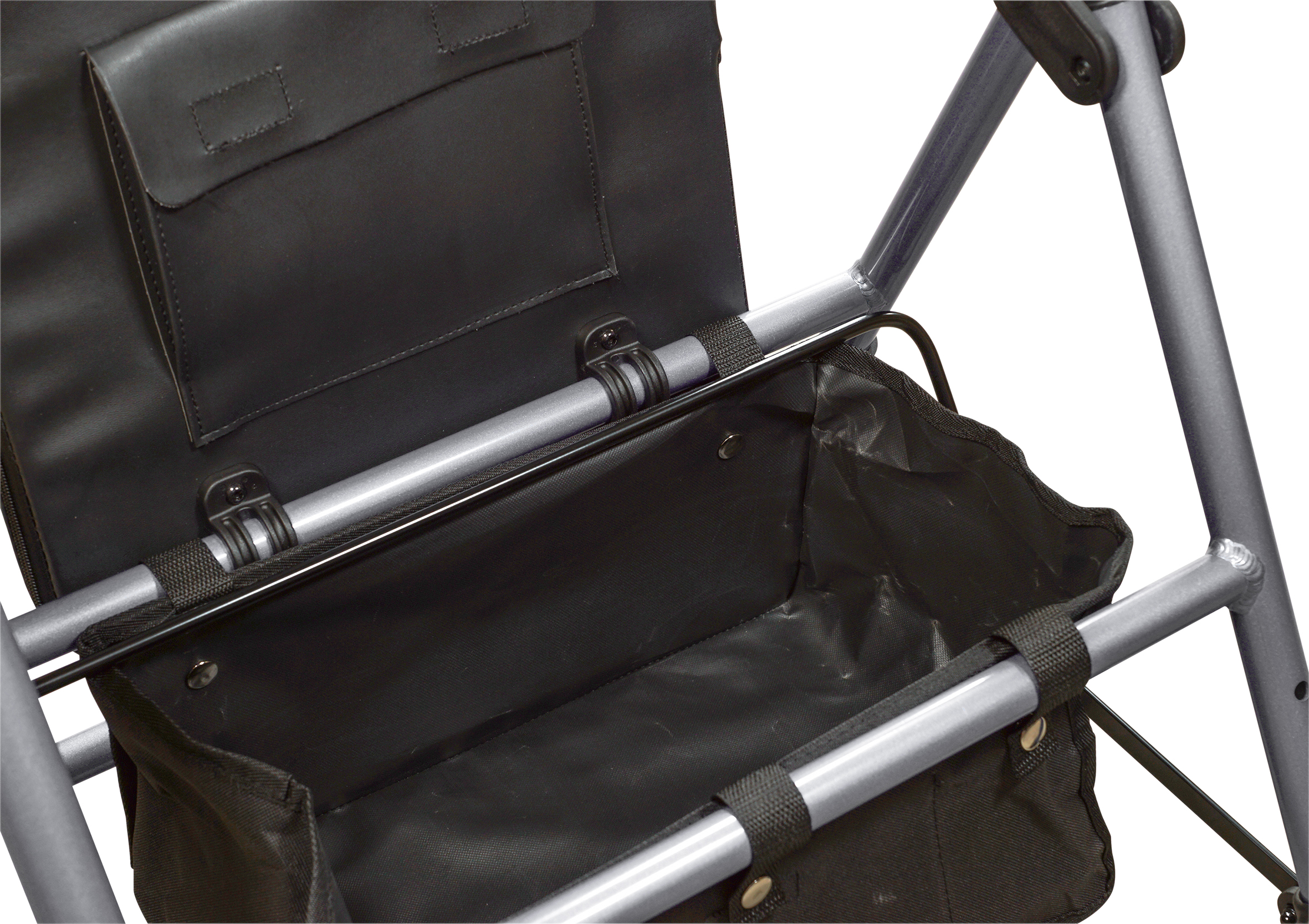 The rollator folds effortlessly with a convenient folding mechanism; the backrest remains in place and flips back automatically when folded. A padded, flip-up seat provides comfort when stationary, with adjustable seat height for added convenience. Beneath the seat, a discreet storage bag offers a secure space for small shopping items and personal belongings, keeping them safe and dry. Supporting a maximum user weight of 136kg (21 stones), this rollator requires no tools for assembly, making it a practical and user-friendly mobility aid.