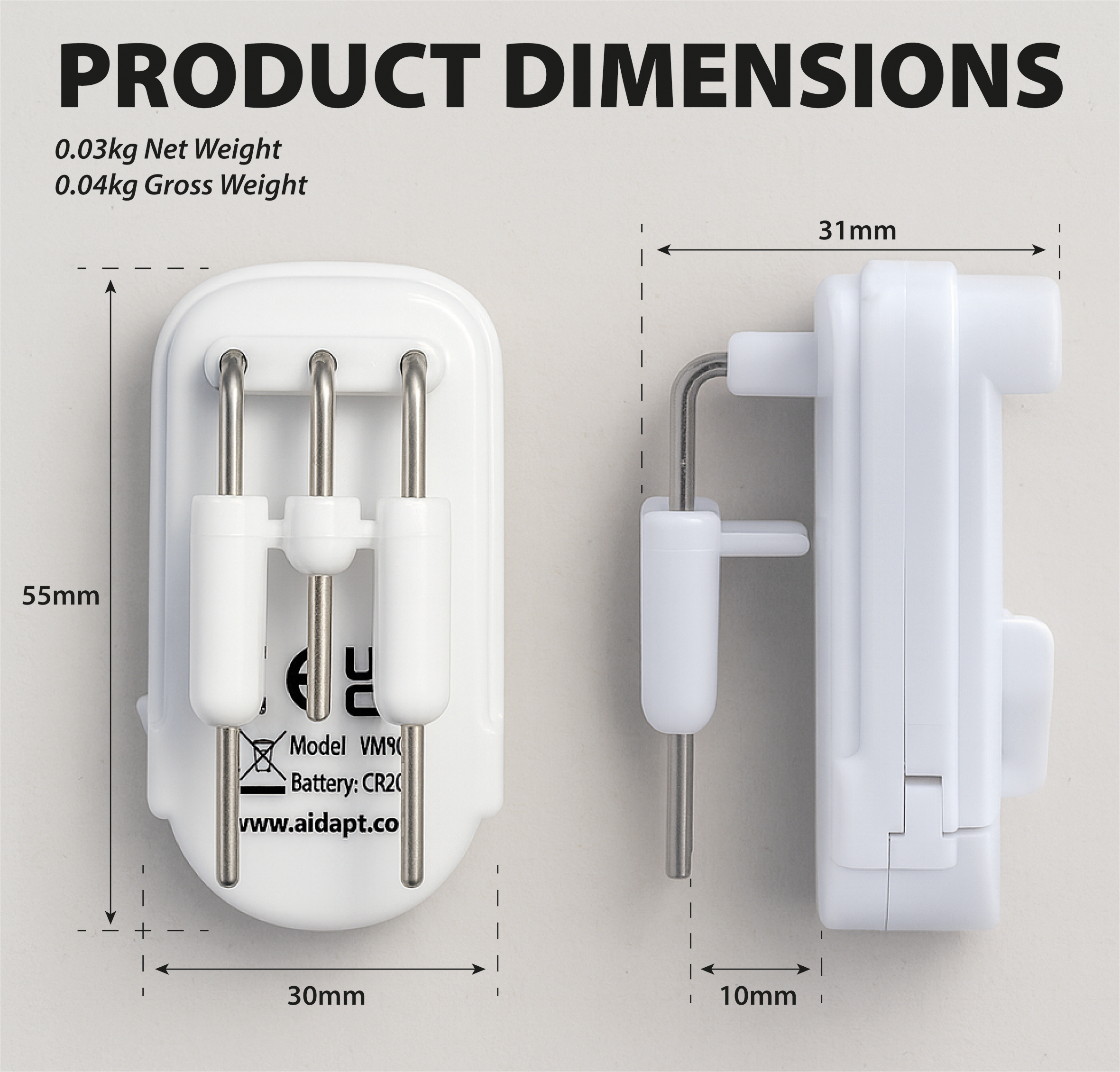 - Battery included β Powered by a replaceable CR2032 battery (supplied) for immediate use