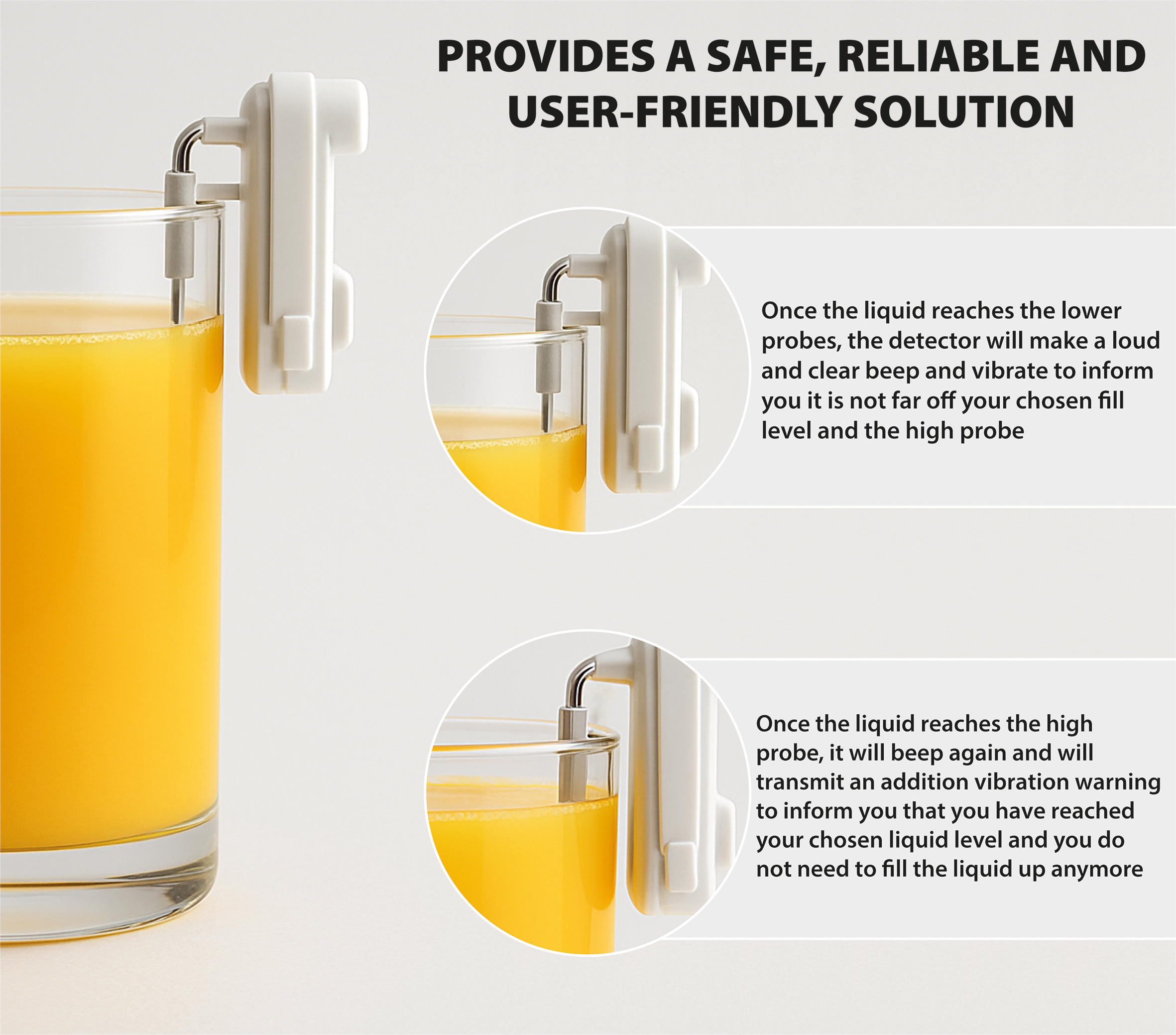 - Adjustable detection level β Simply slide the device up or down on the cup to set your preferred fill height