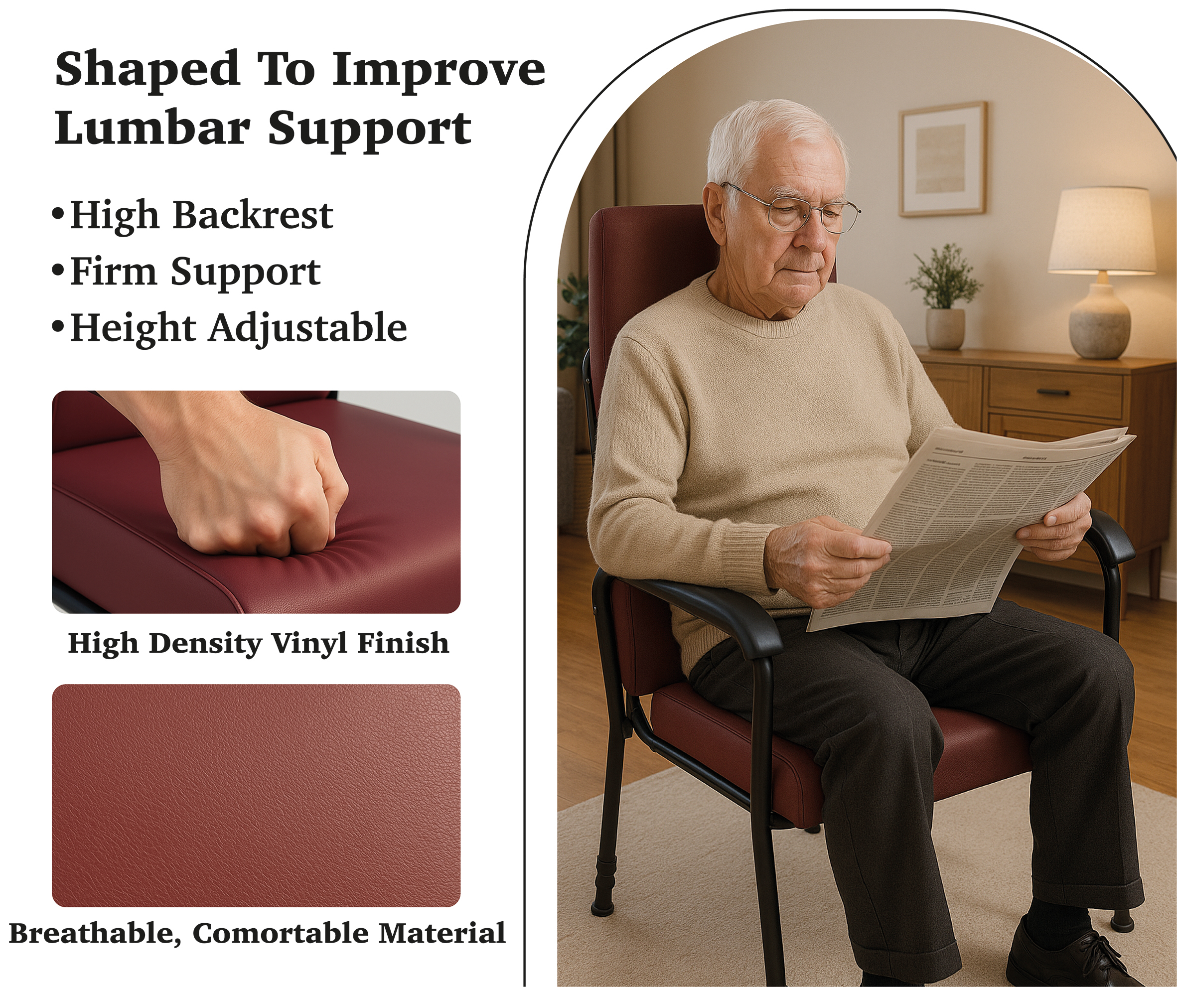 The Longfield Height-Adjustable Lounge Chair is crafted to provide both comfort and durability, featuring easy maintenance and cleaning for long-term use. Its ergonomically designed back offers enhanced lumbar support, while the high backrest provides additional head support. The chair’s frame is coated with a durable polymer finish, and the arms are made from polyurethane foam for added comfort. Available in a variety of colors, the upholstery seamlessly complements both modern and traditional interior styles.