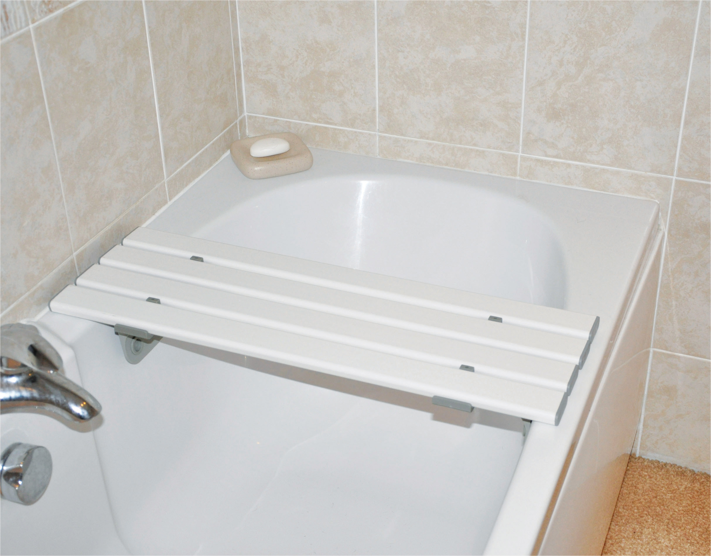 The Medina Bath Board is a high quality, reinforced plastic bath board. It is simplicity itself to install and maintain, with self-locking cleats. The slatted surface fully conforms to MHRA guidelines and is more than sufficient for adequate drainage. Available in various widths, suitable for cast iron or acrylic baths. Retail boxed.