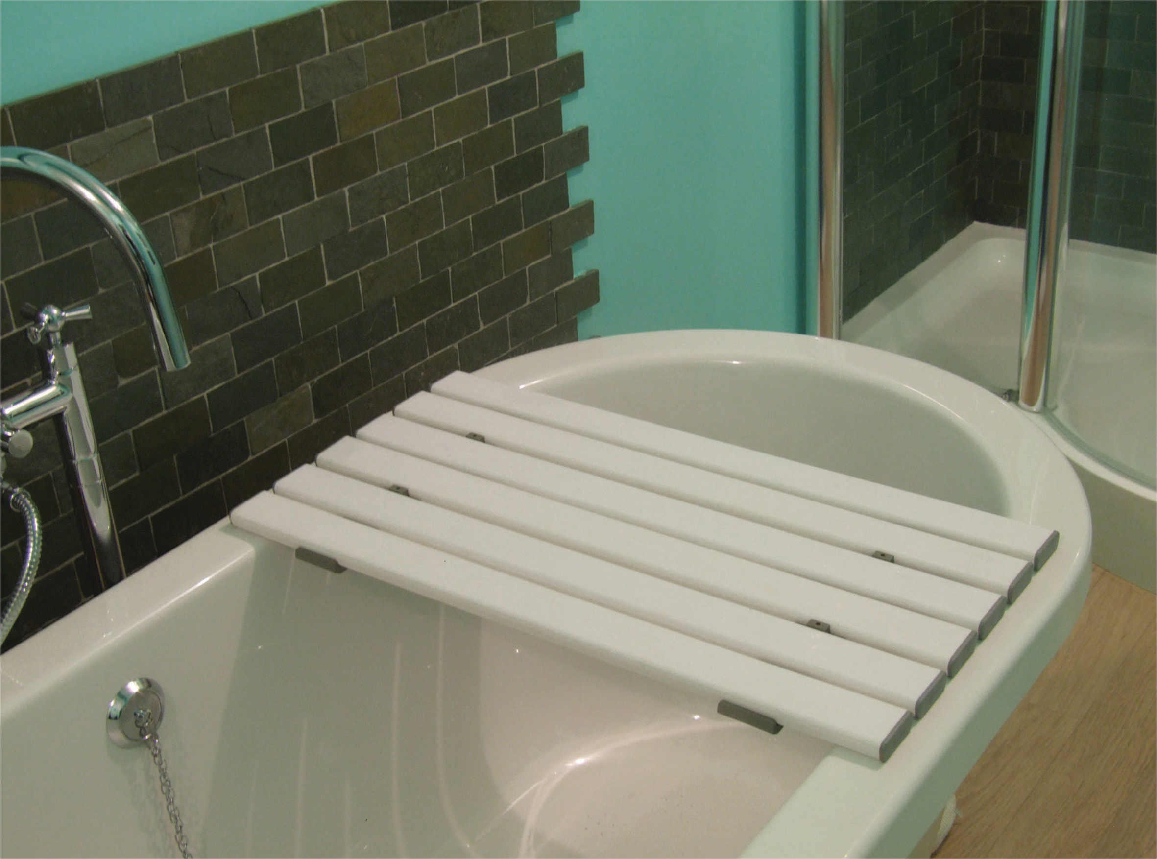 The Medina Shower and Bath Board is a high quality reinforced plastic bath board. It is simplicity itself to install and maintain; with self-locking cleats and made from a wipe-clean material. The slatted surface fully conforms to MHRA guidelines. Available in several widths for a perfect fit with acrylic or cast iron baths.