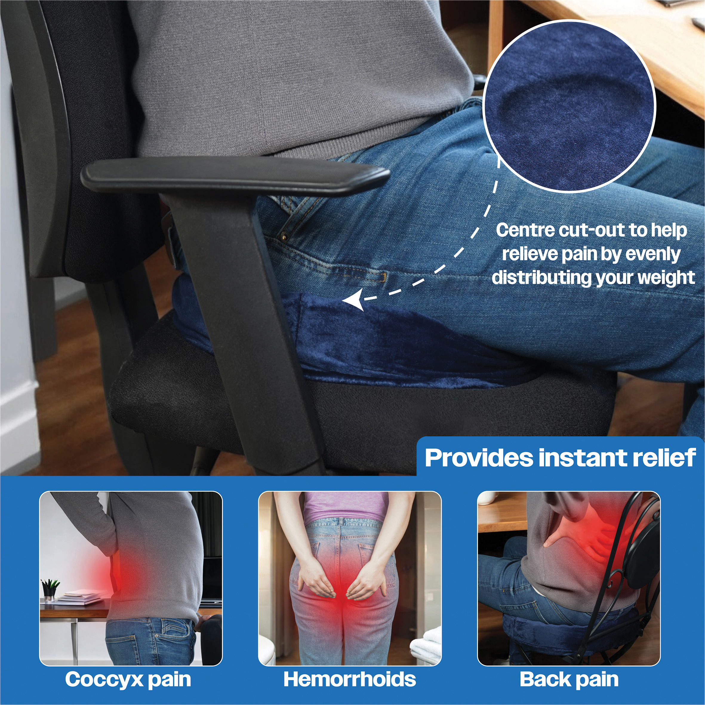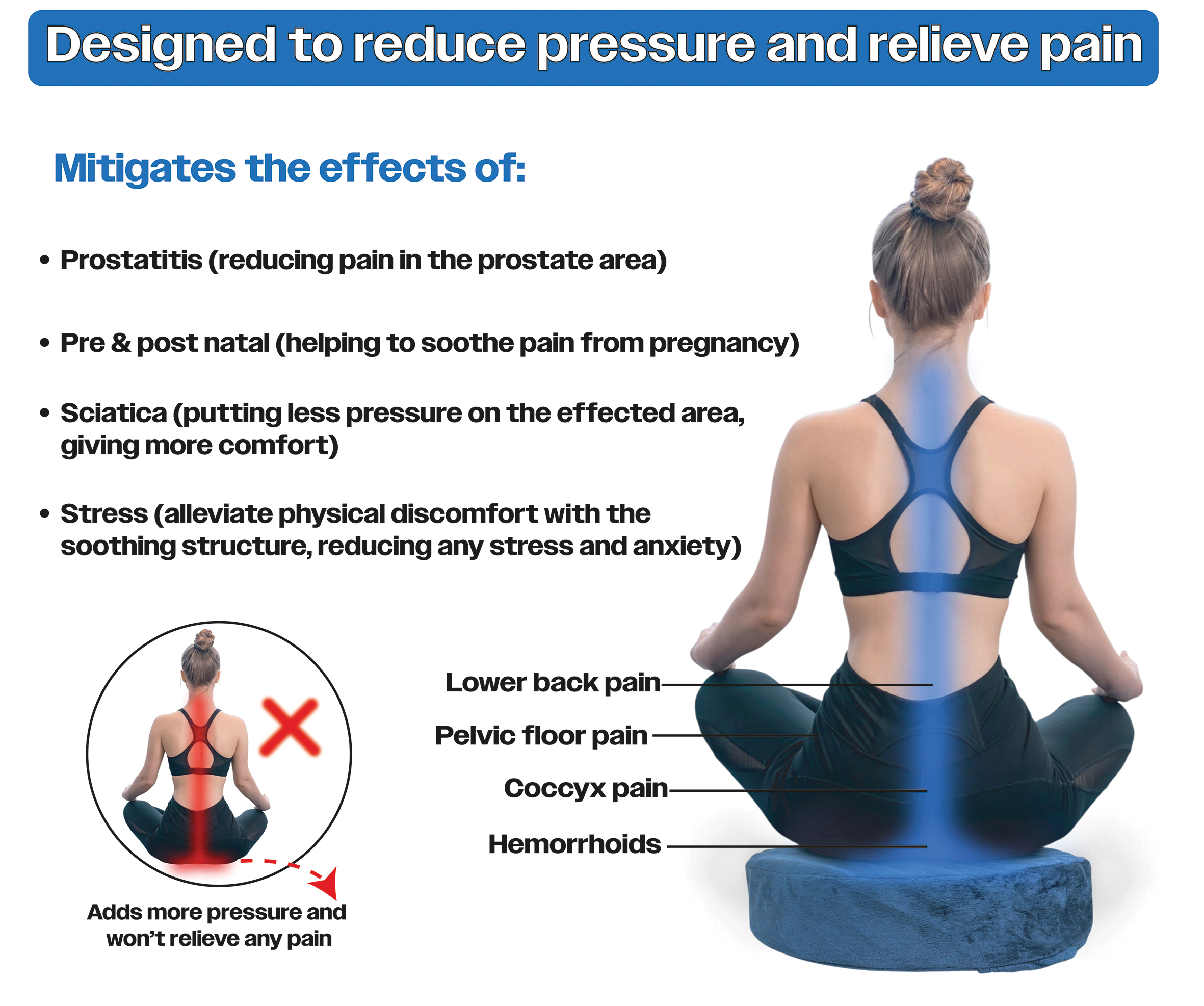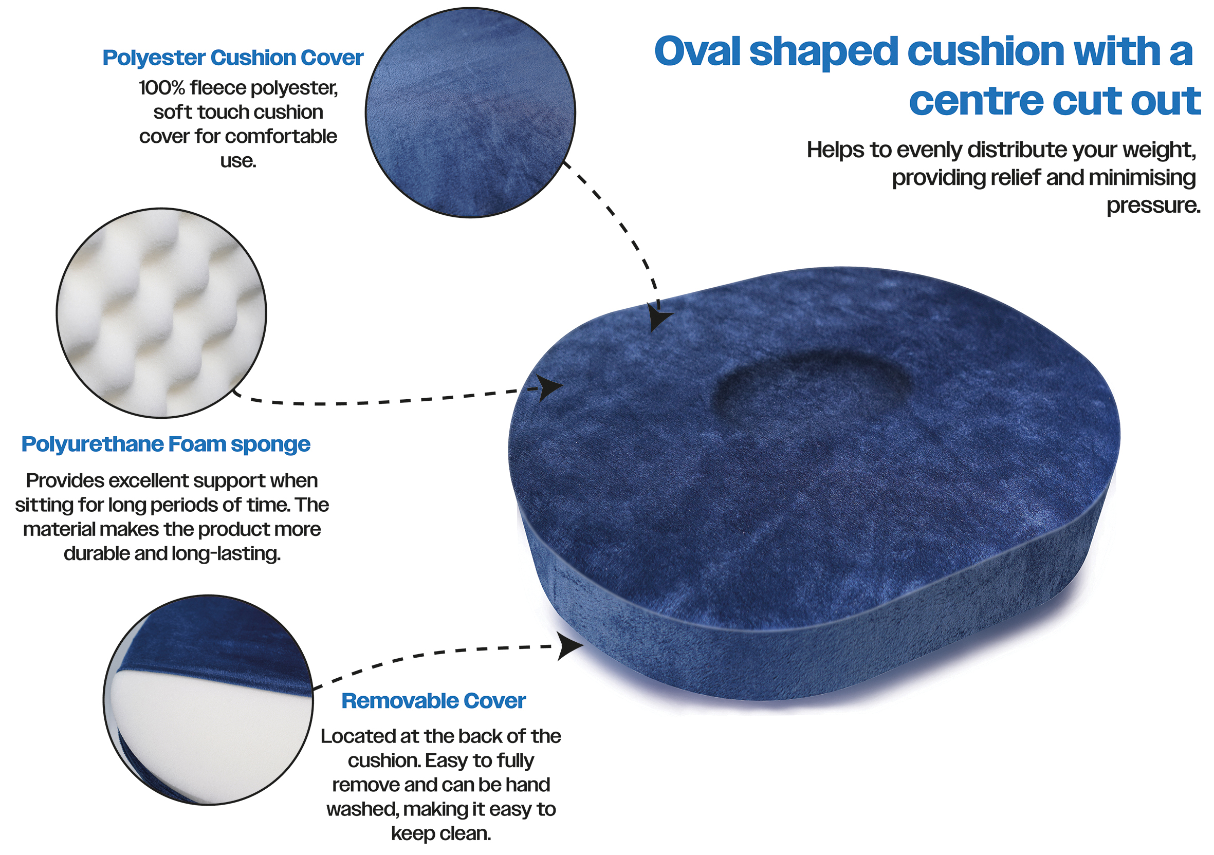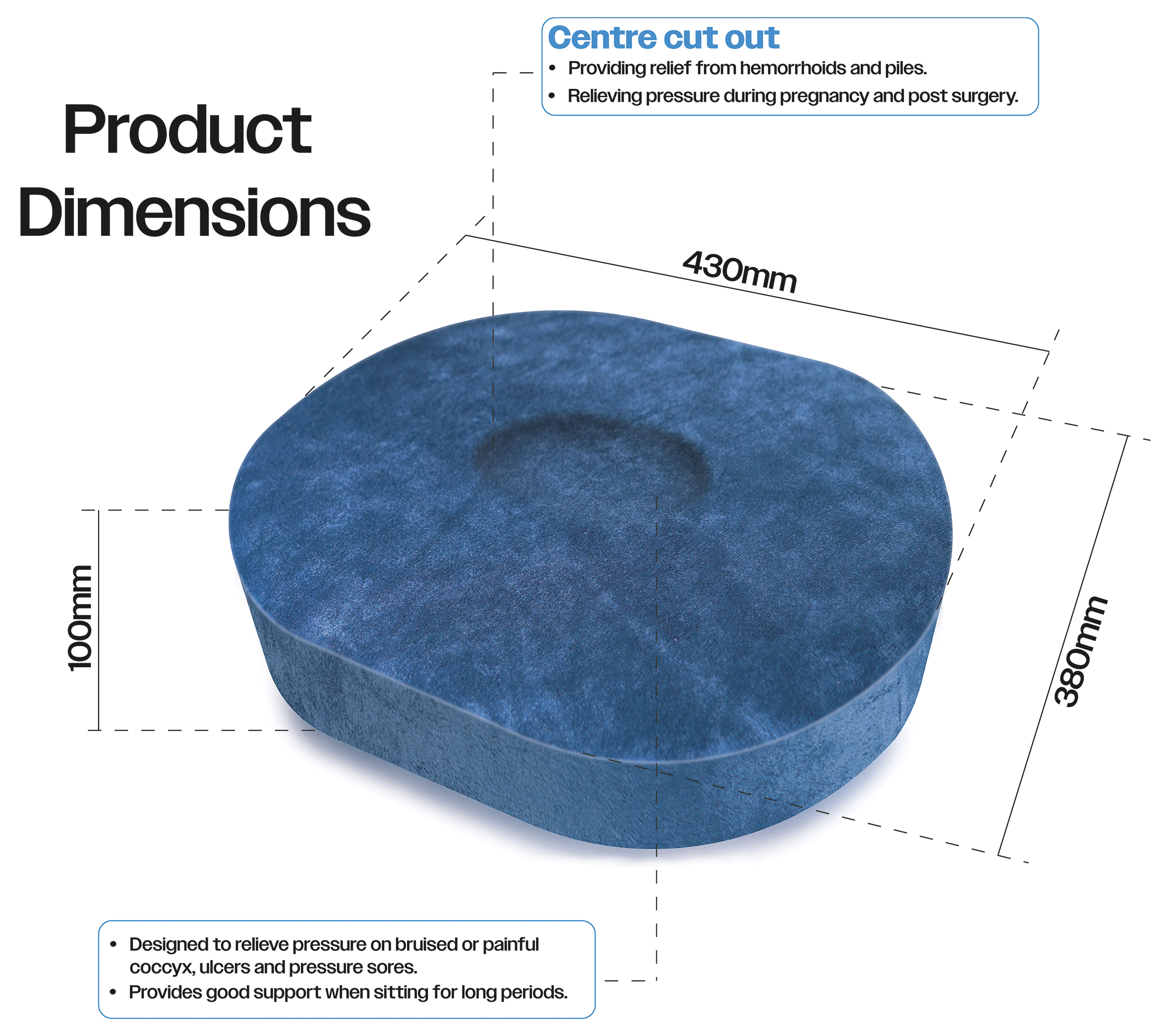 - BENEFITS; Designed to relieve pressure on bruised or painful coccyx, haemorrhoids, ulcers and pressure sores