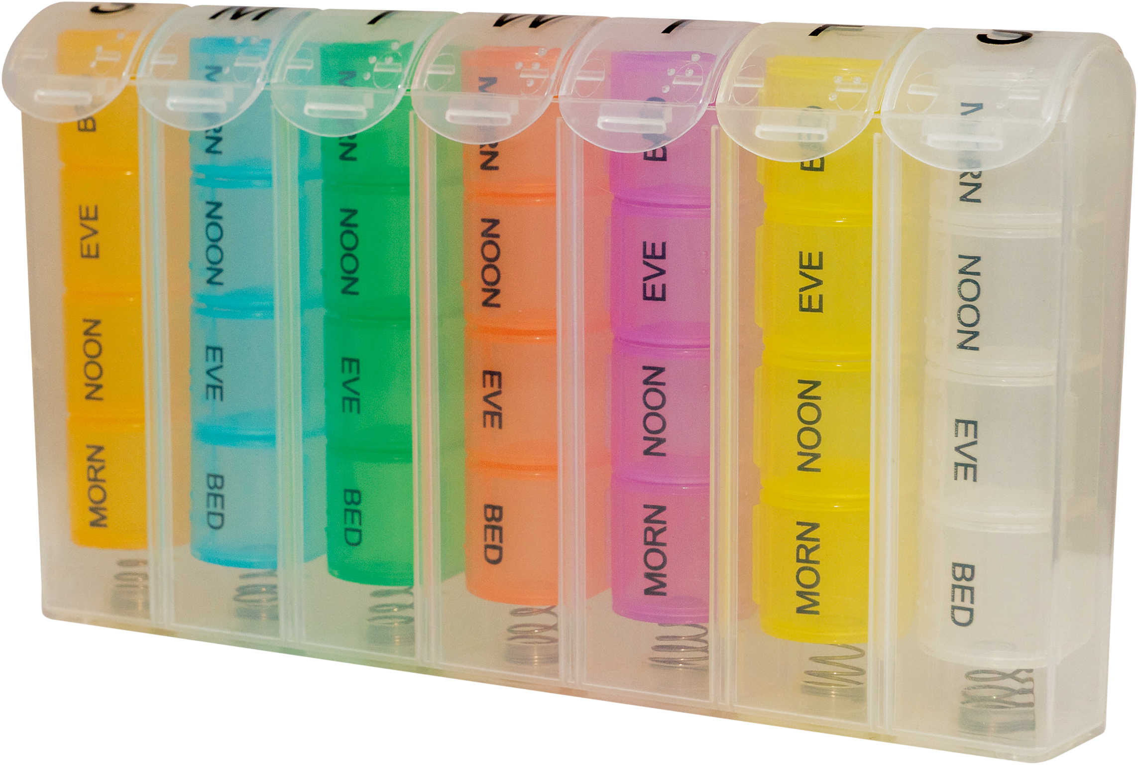 - Clearly identifiable seven days with four compartments per day morning, noon, evening, and night