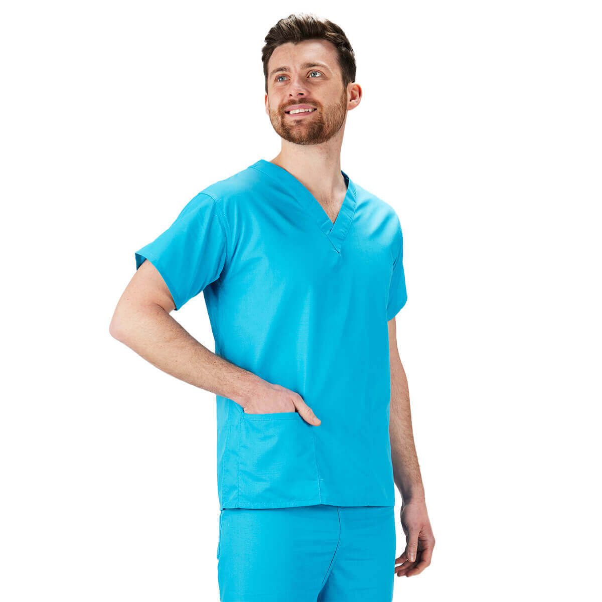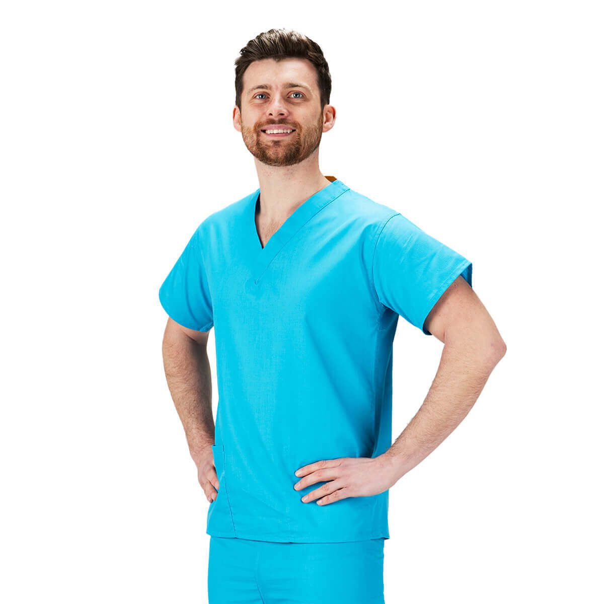 Our hunter green scrubs come in sizes XS through 4XL, each with a matching neckline colour code to speed up wardrobe choices. Wear with the matching Hunter Green scrub trousers.