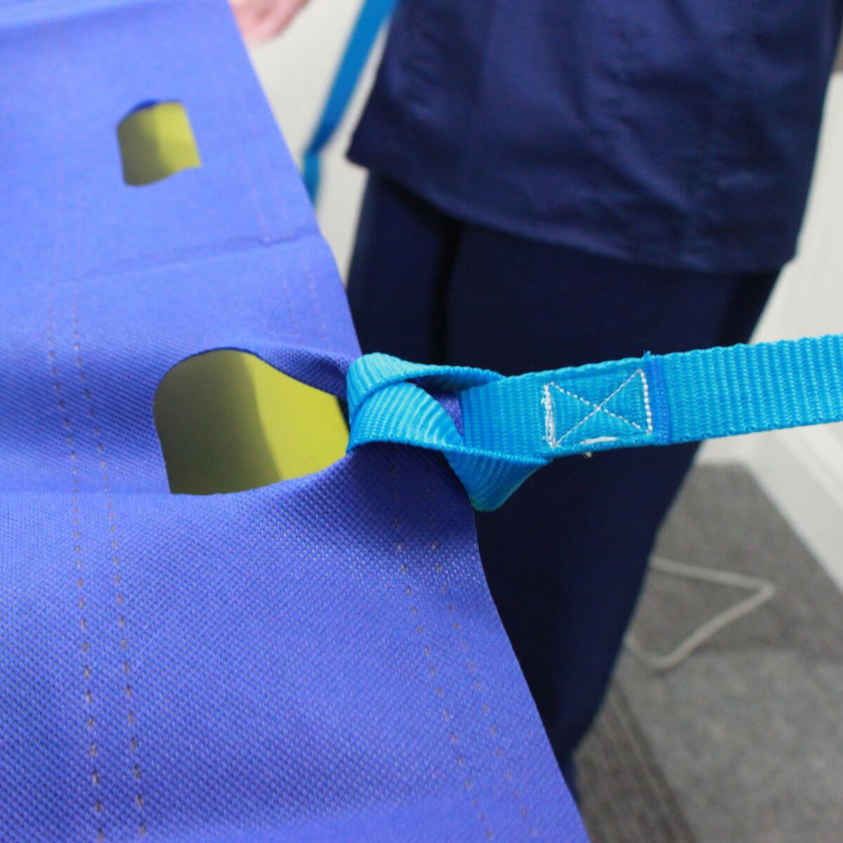 Made from strong webbing with a looped handle for secure grip, this slide sheet extension strap is a simple yet effective addition to your patient handling equipment.