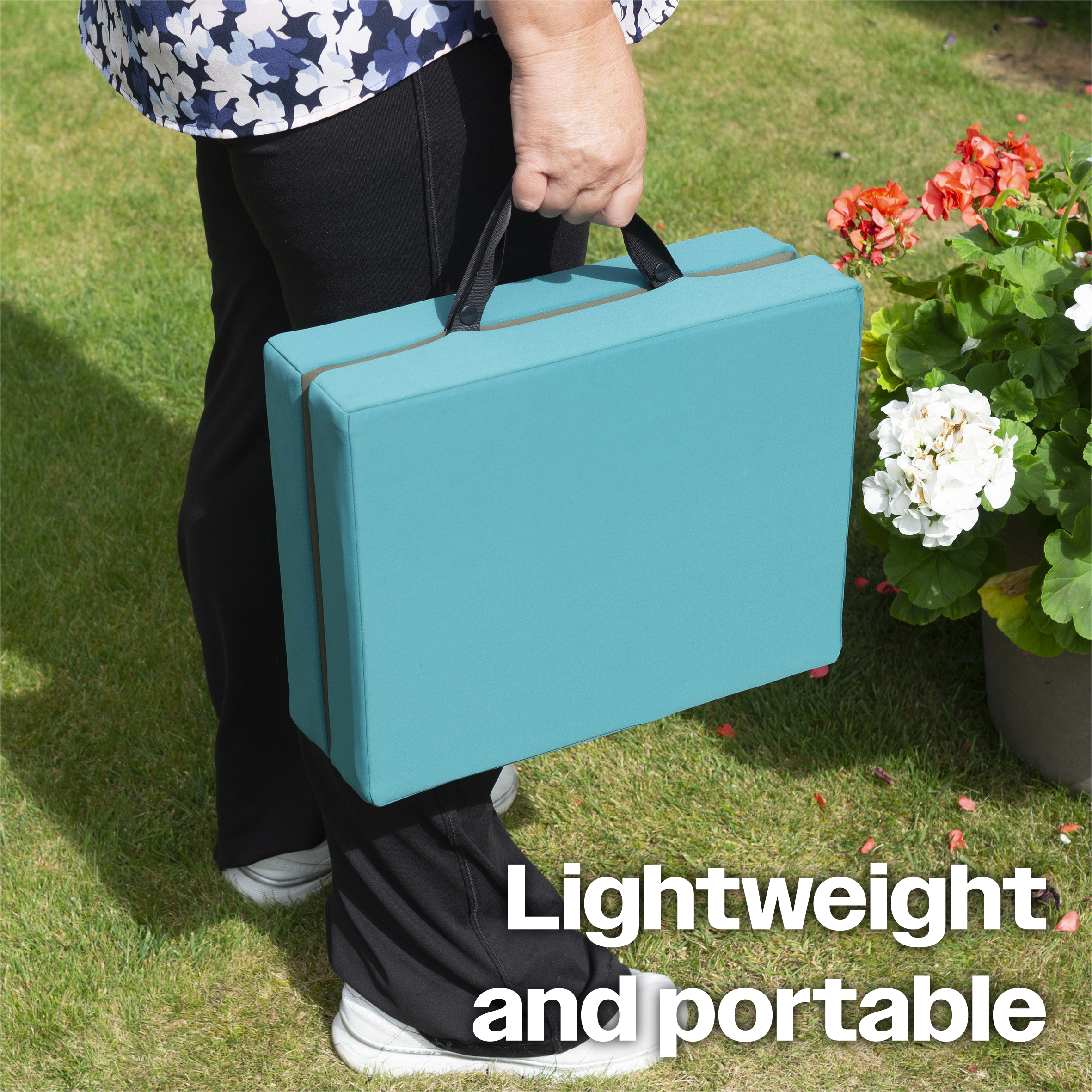 This luxuriously thick kneeler cushion offers exceptional support, pressure relief, and comfort for your knees and back while kneeling. Its water-resistant design makes it suitable for both indoor and outdoor use. Versatile and practical, it can be used for gardening, housework, children’s bath times, picnics, plumbing, auto repairs, prayer, and more. When not in use, the cushion folds in half and is secured at the top with built-in carry handles for easy transport.