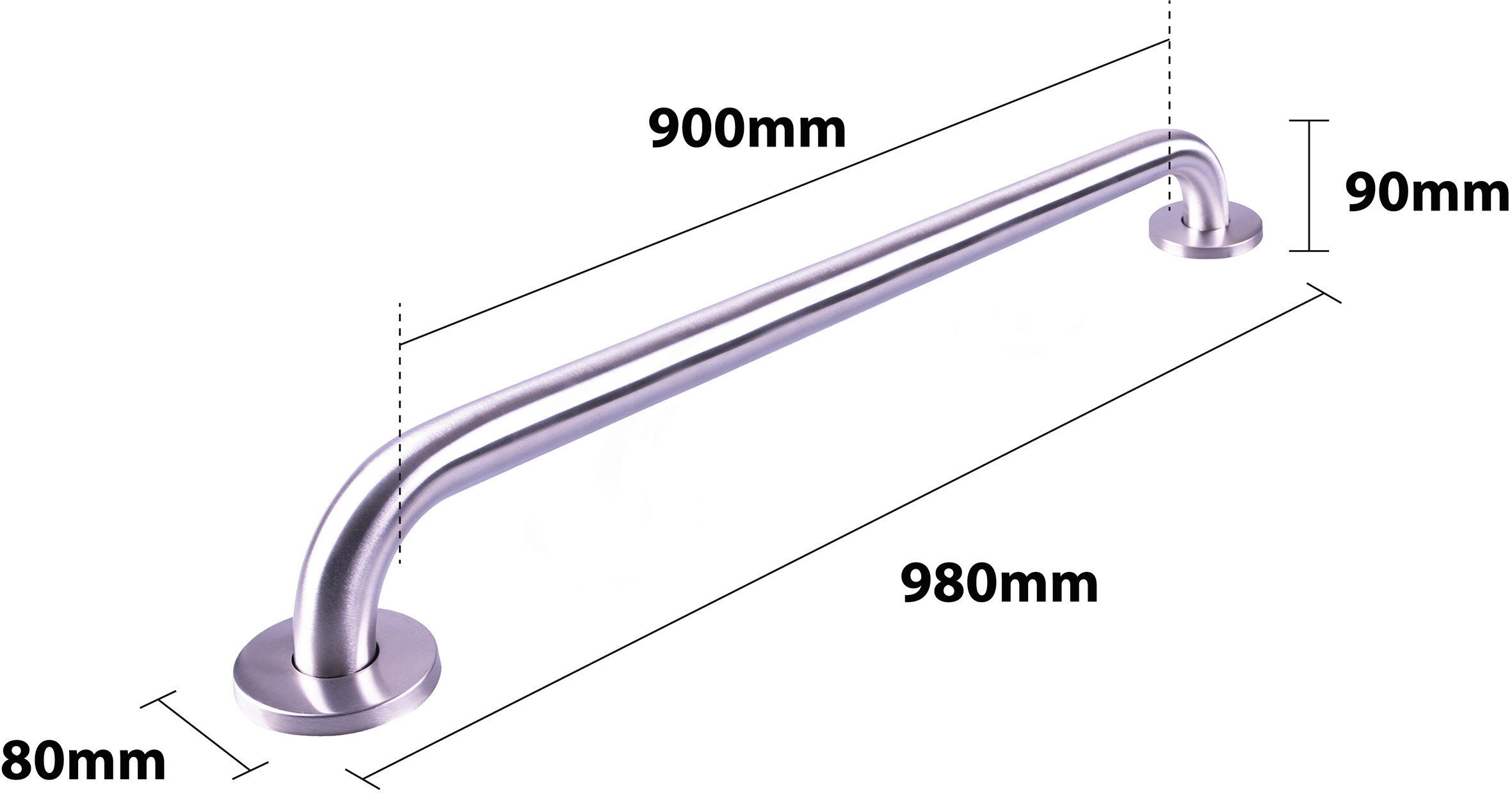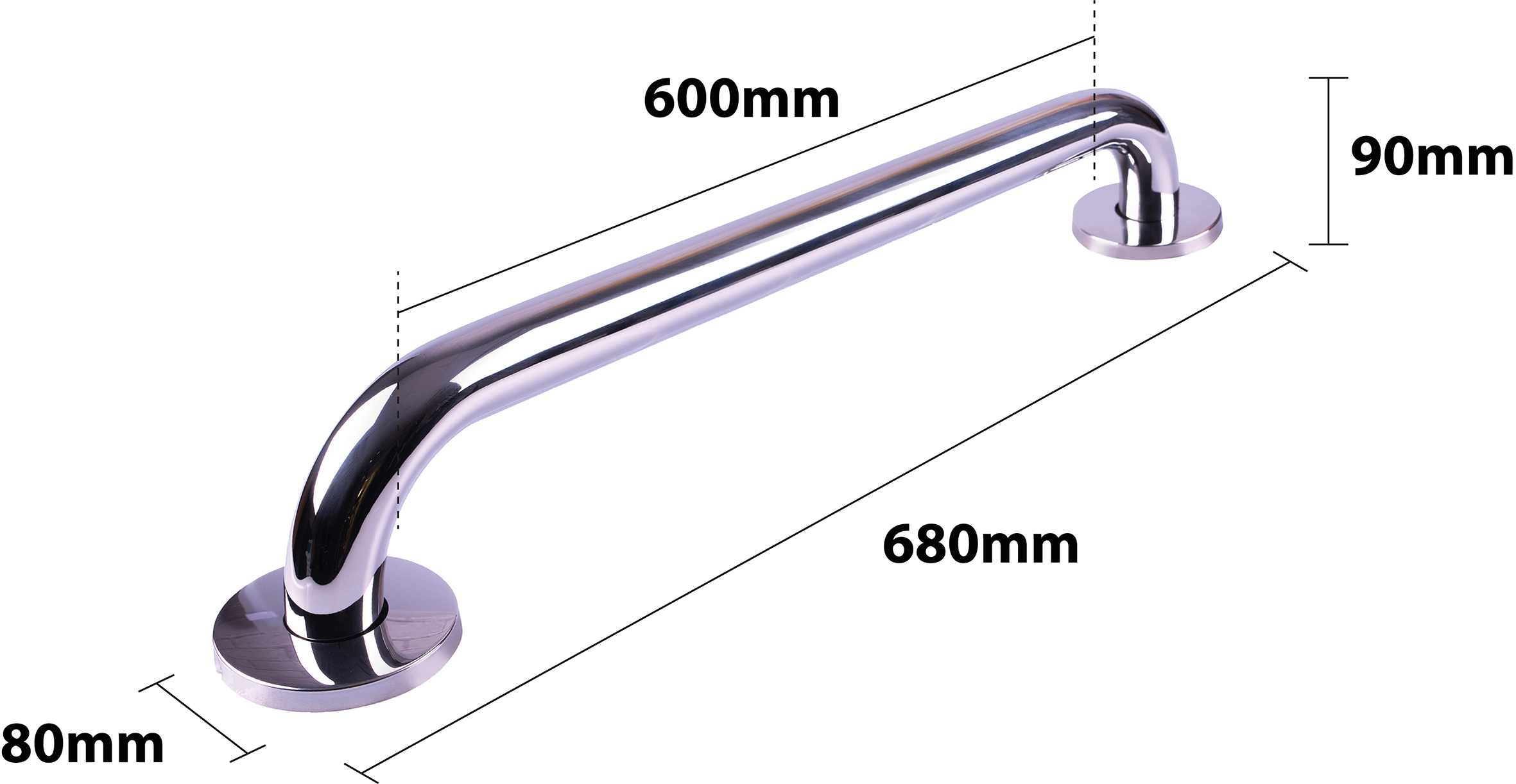 Stainless Steel grab bar in a polished finish. Available in four sizes, 300,450,600 and 900mm.