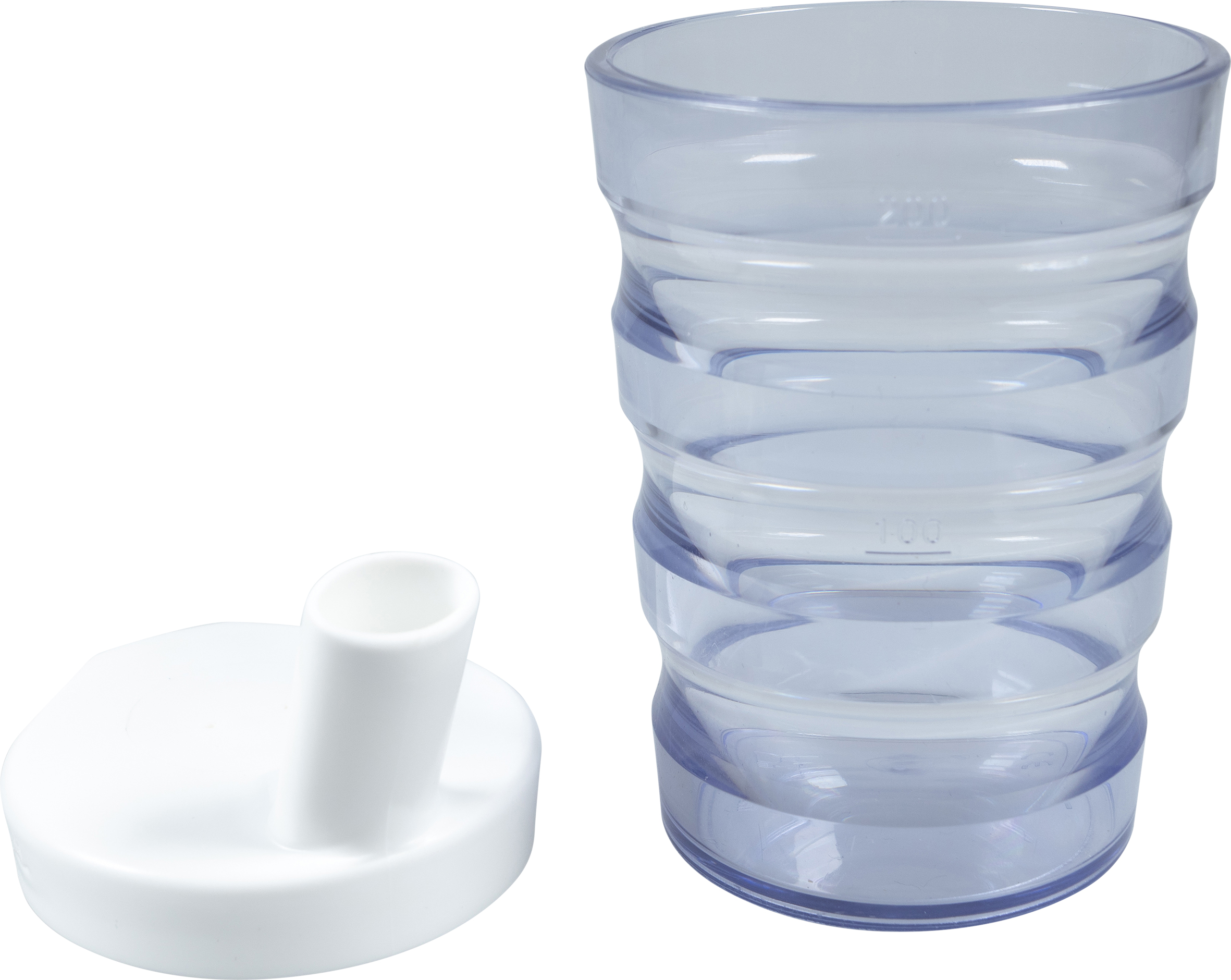 This mug features grooves allowing a secure grip in the hand and is anti-slip. It is suitable for hot and cold liquids and is supplied with a spill-proof valve in the lid. Only a small drop escapes before the vacuum seals off the main flow. The Ultra Grip Mug has an angled spout and has measuring guides on the side for 100ml and 200ml capacity. Microwave and dishwasher safe.