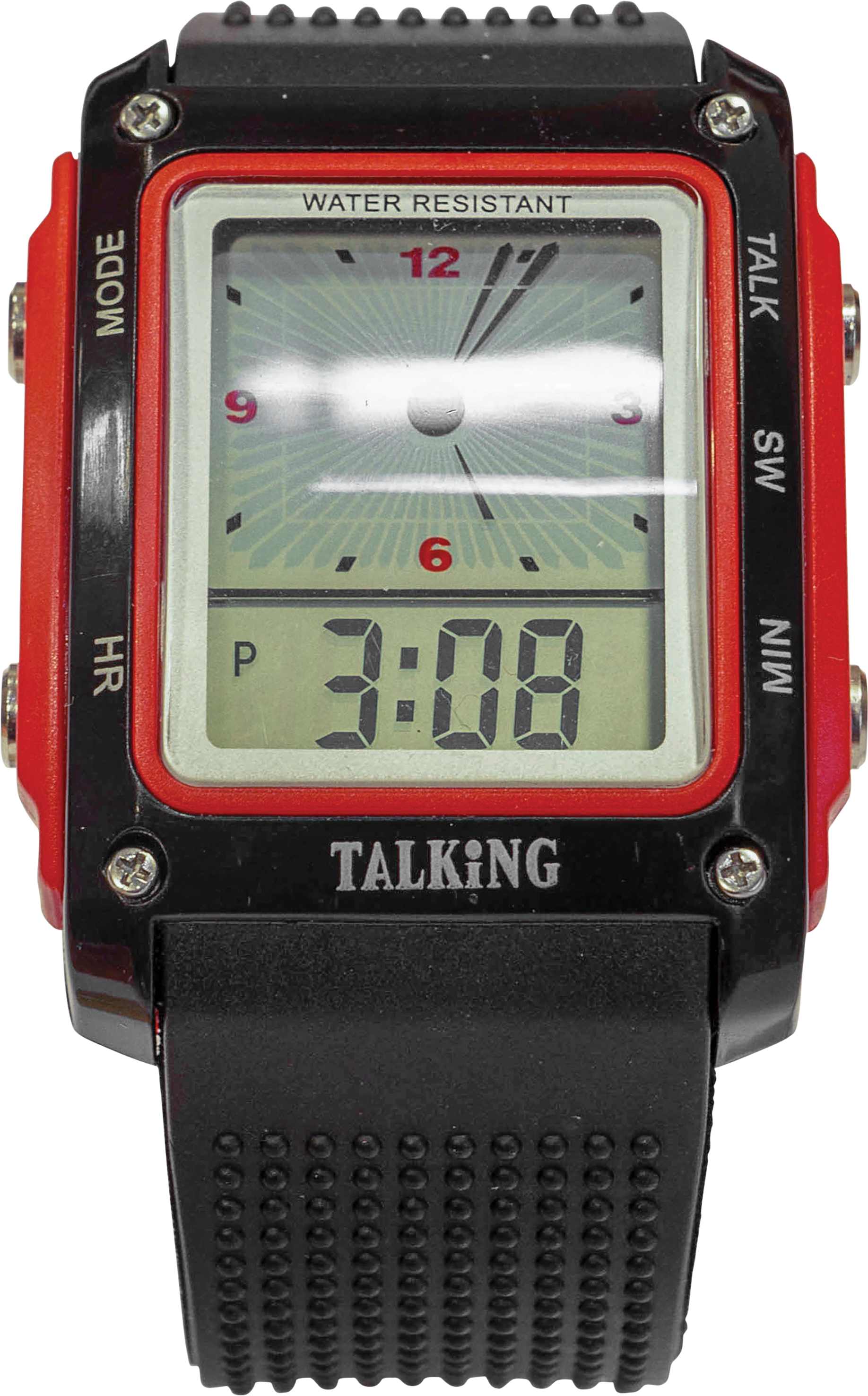 The talking water resistant digital wrist watch is easy to use and equipped with an alarm. It is the perfect aid for partially sighted individuals. The watch has a large digital display that not only shows the time but clearly speaks it as well at the touch of a button. It is light weight, comfortable to wear and water resistant up to 10m