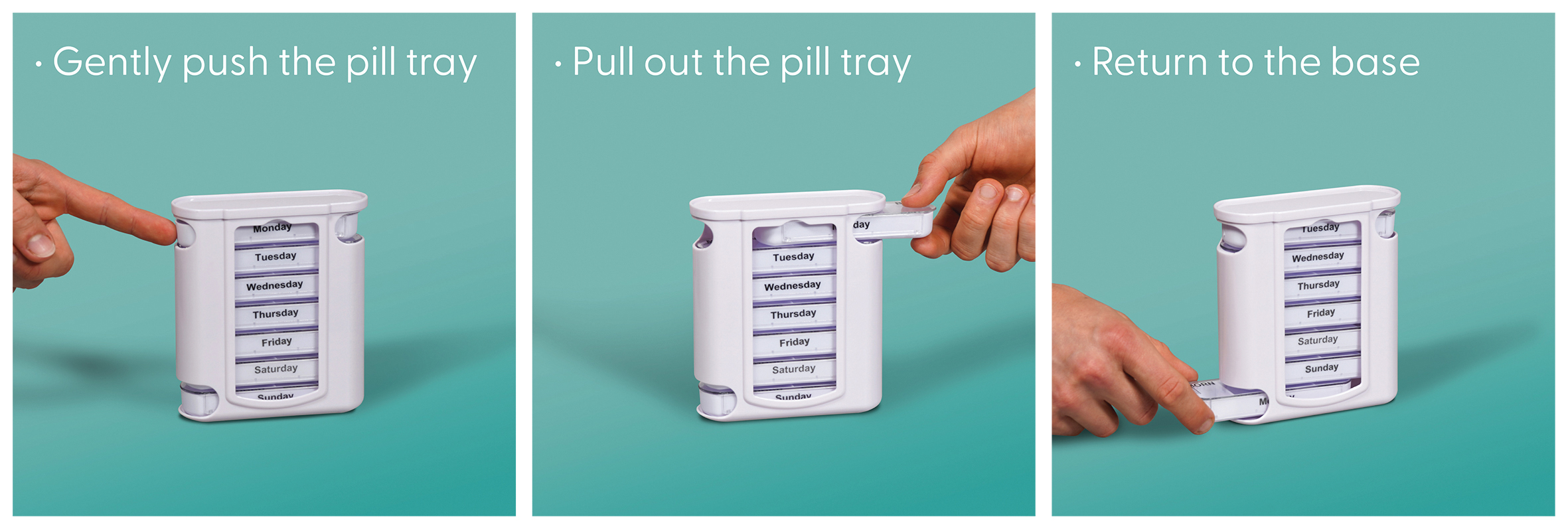 The Weekday Pill Dispenser is ideal for people who are required to take a number of pills throughout the day. It has seven, clearly labelled individual removable compartments for each day of the week, with each day having four compartments: morning, noon, evening, and night.