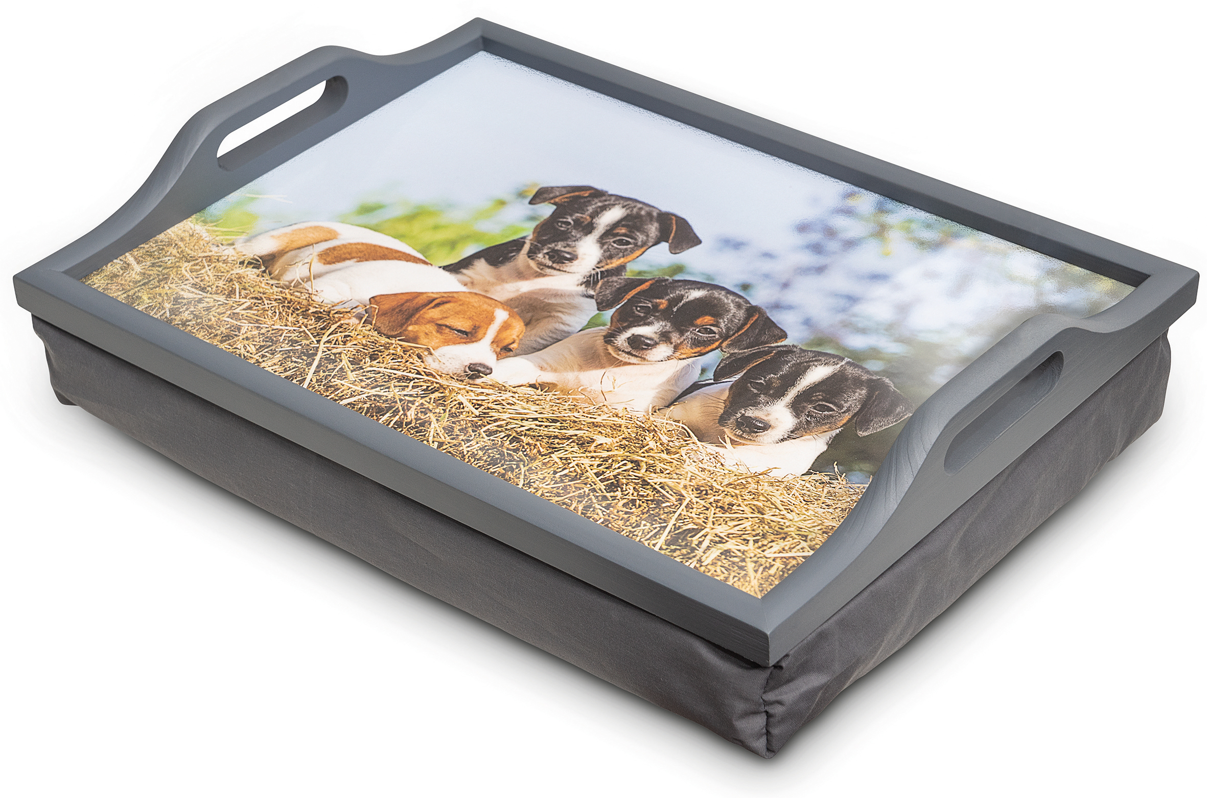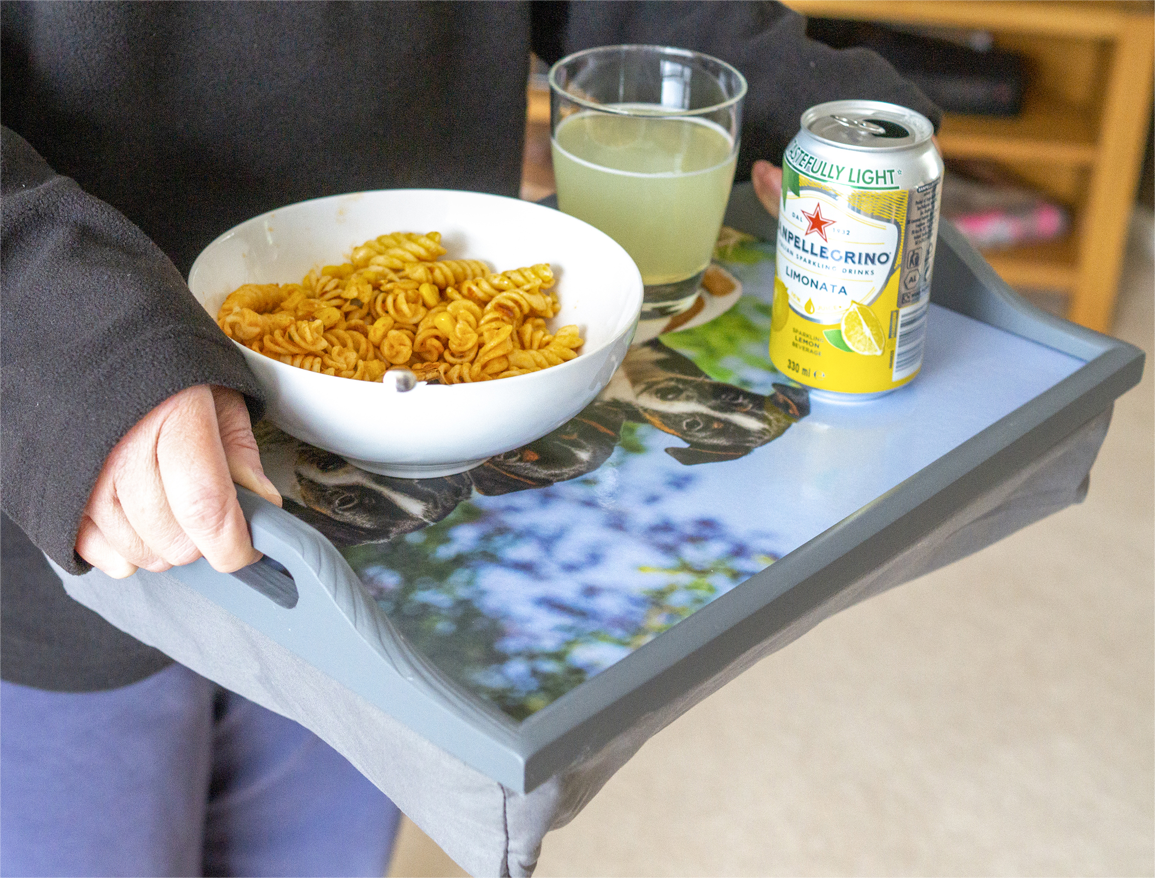 This attractive and functional Lap Tray makes breakfast in bed, reading, writing and crafts easy and comfortable. The lap tray has a built-in cushion below the tray top, finished in either tartan fabric or plain beige, so will rest comfortably on your legs while you lie or sit. The table top surface has a pleasant design that will suit both modern and traditional homes and is laminated for easy cleaning. With built-in handles to more easily carry and position the Lap Tray.